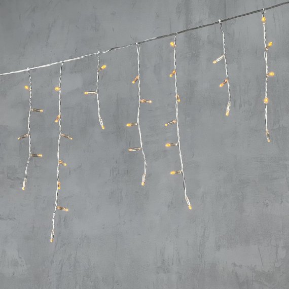 Гирлянда "Бахрома" ("Айсикл") представляет собой гибкий горизонтальный шнур со свисающими вертикально нитями разной длины, на которых через каждые 10 сантиметров располагаются светодиоды.