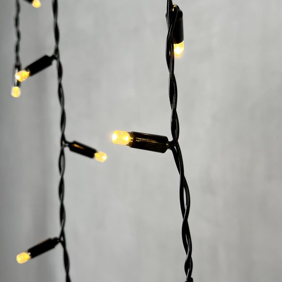 Гирлянда Бахрома с Колпачком 3,1 x 0,5 м Тепло-Белая 220В, 120 LED, Провод Черный ПВХ, IP65