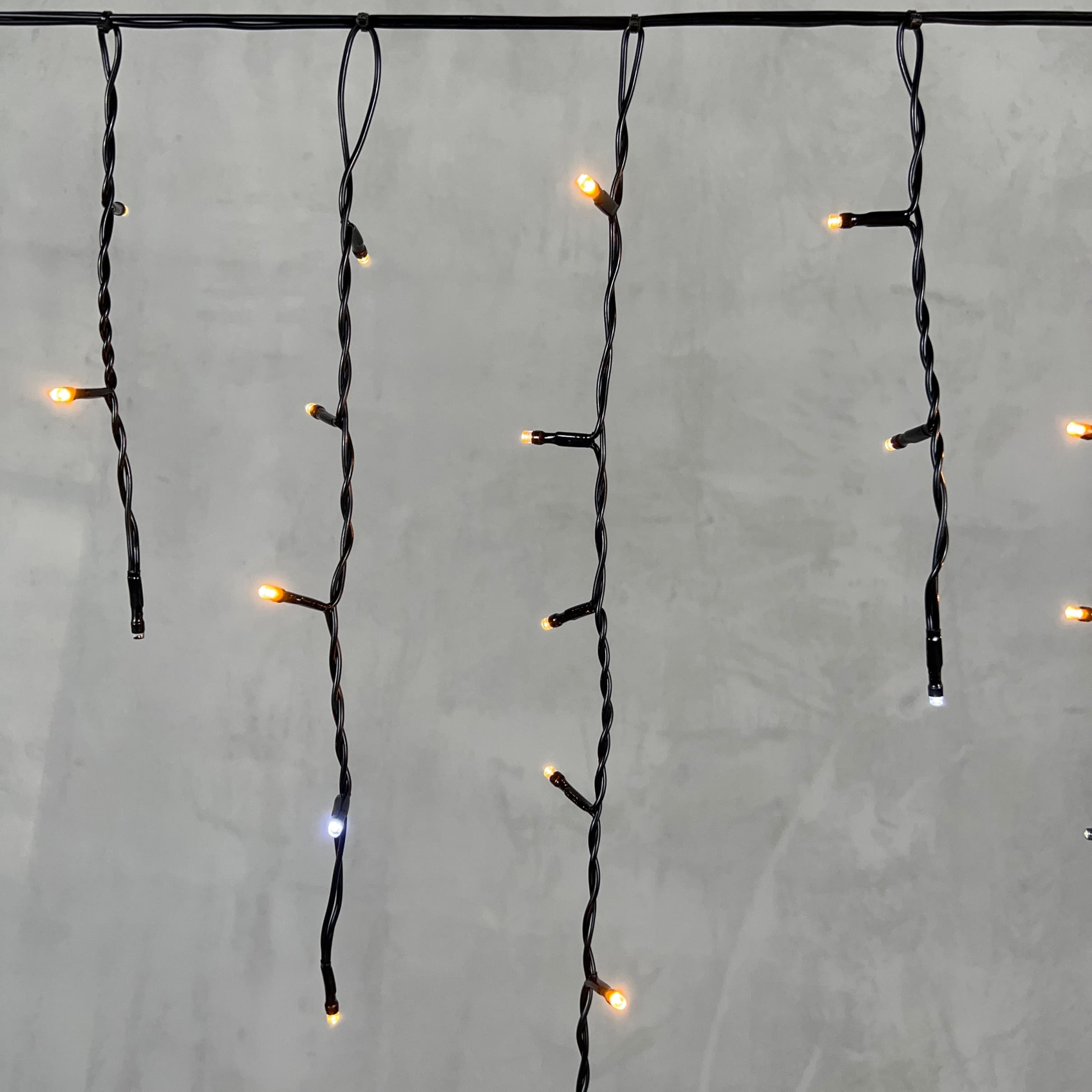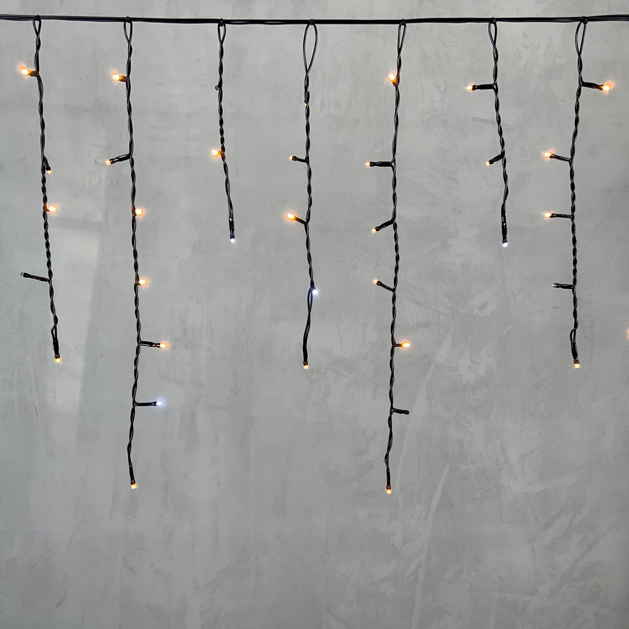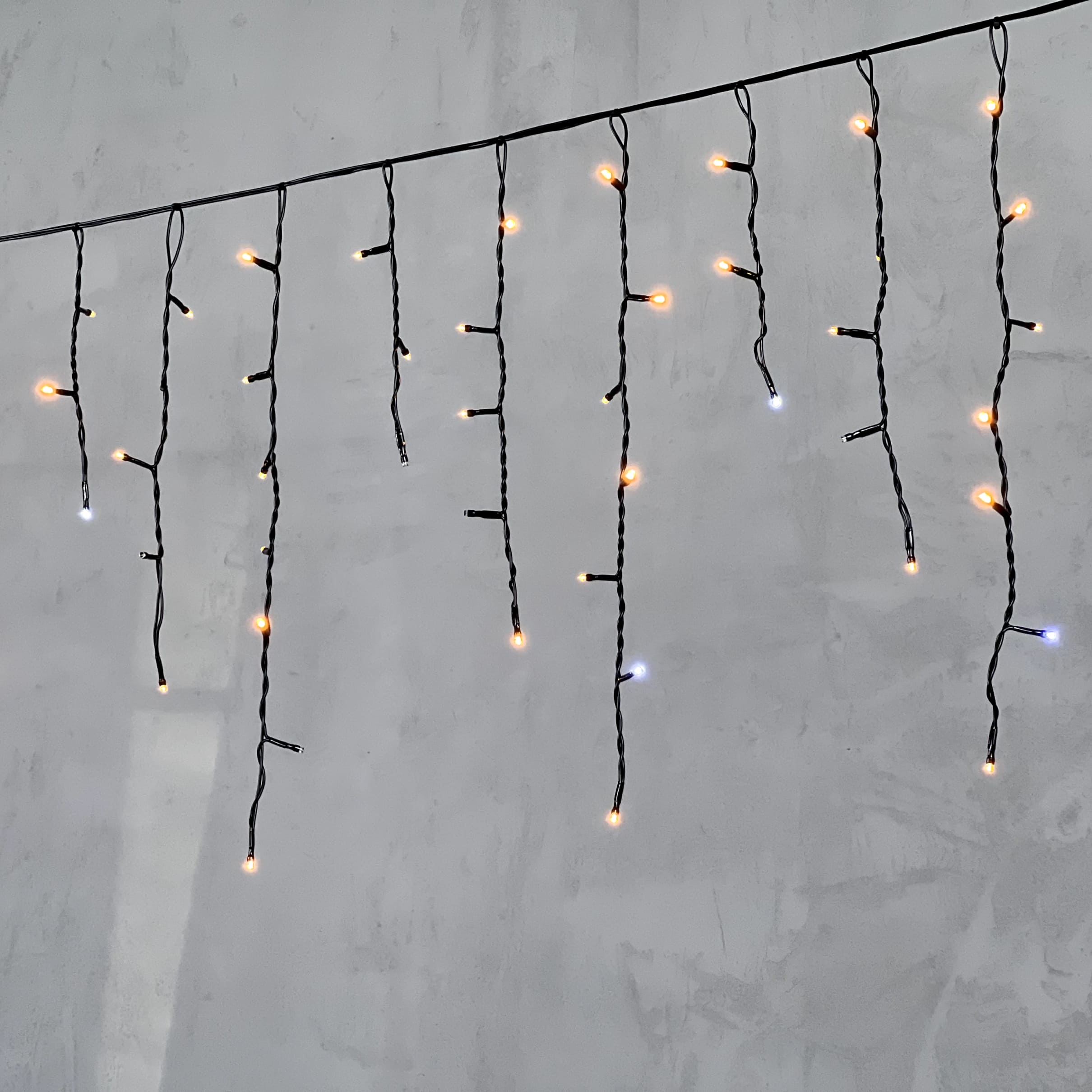 Гирлянда Бахрома 3,1 x 0,5 м Экстра Тепло-Белая с Мерцанием Белого Диода 220В, 150 LED, Провод Черный ПВХ, IP54