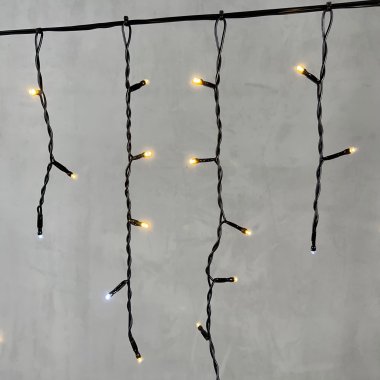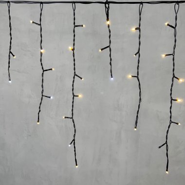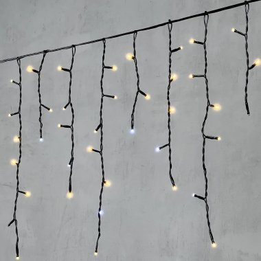 Гирлянда Бахрома PIL150BLW-11-2WW от российской фабрики Laitcom. Питание от сети 220V. Лампочки с теплым белым оттенком свечения. Степень защиты от влаги и пыли IP54.