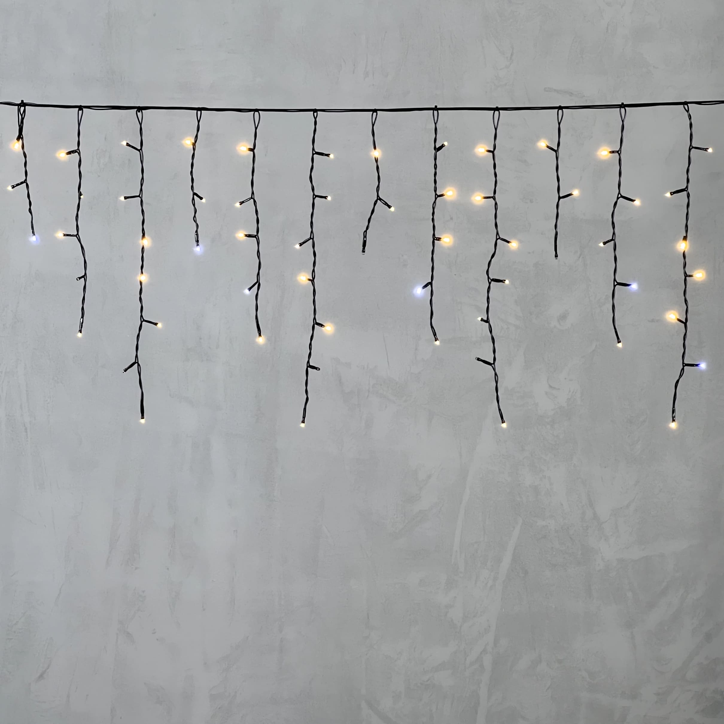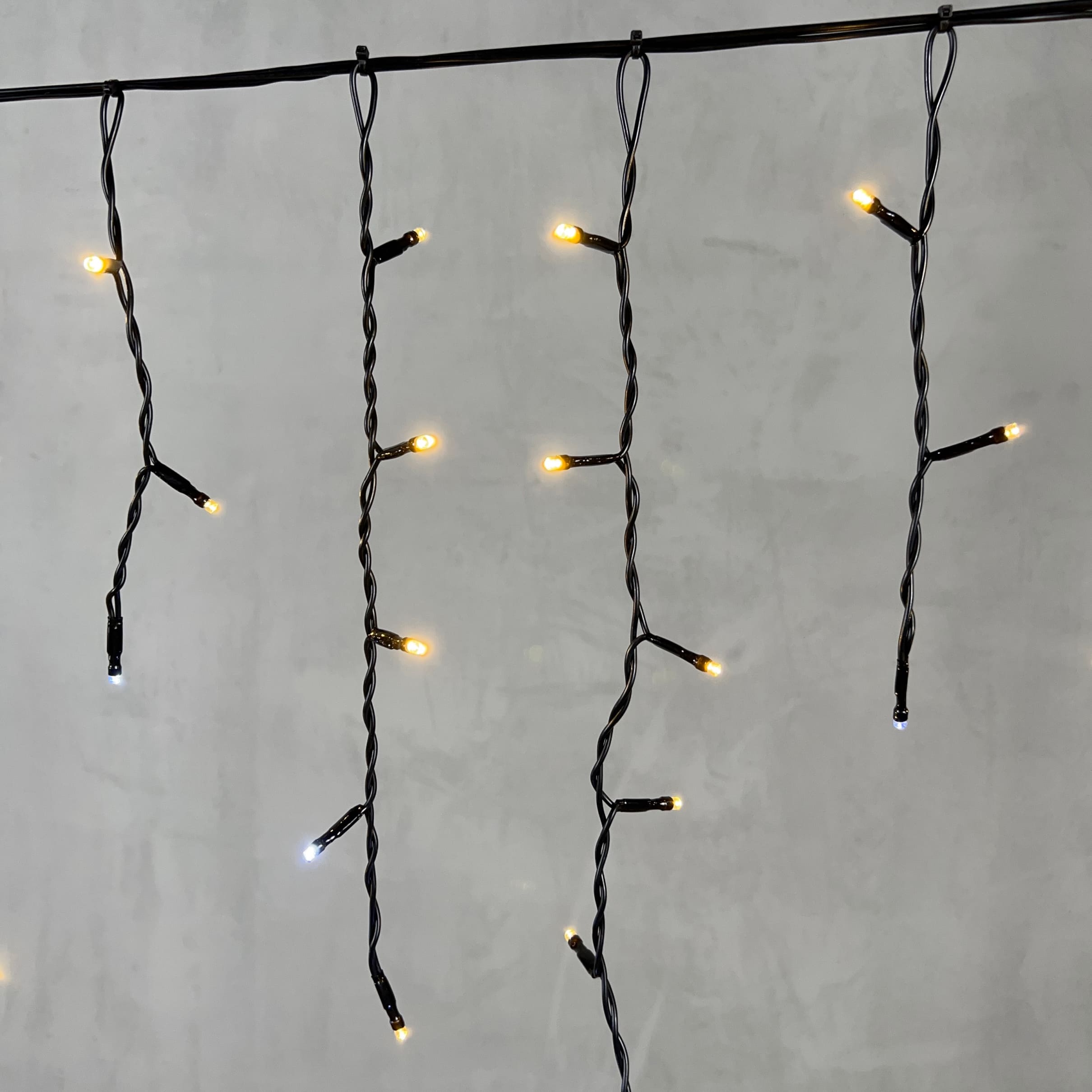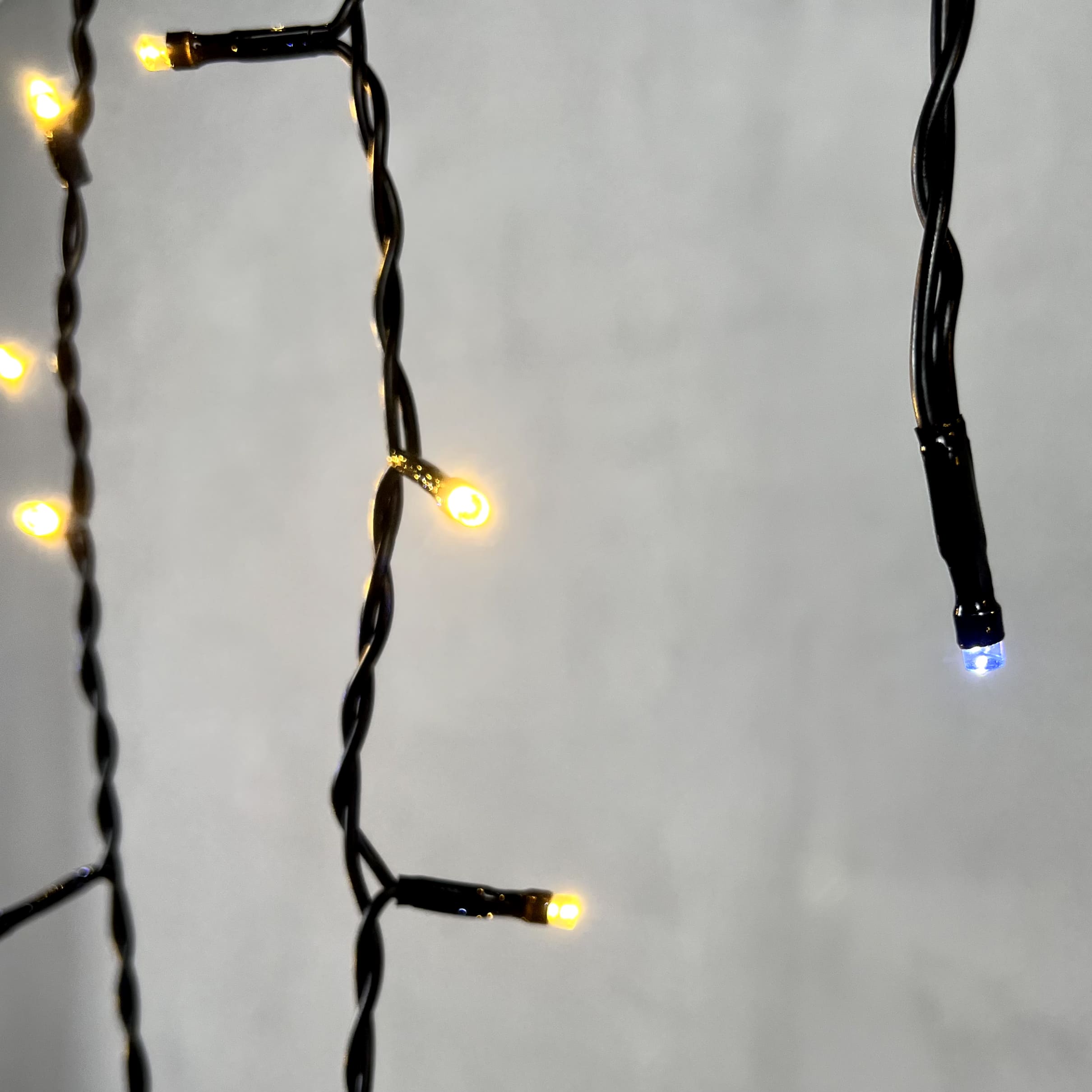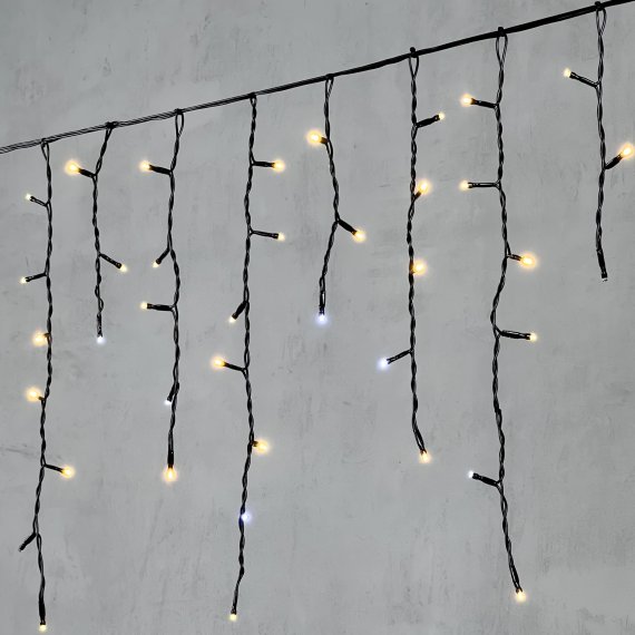 Гирлянда Бахрома 3,1 x 0,5 м Тепло-Белая с Мерцанием Белого Диода 220В, 150 LED, Провод Черный ПВХ, IP54