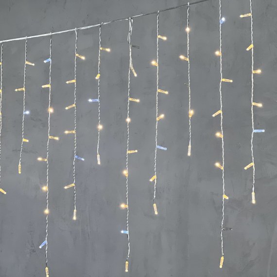 Гирлянда Бахрома с Колпачком 3,2 x 0,9 м Тепло-Белая с Мерцанием Белого Диода 220В, 180 LED, Провод Прозрачный ПВХ, IP65
