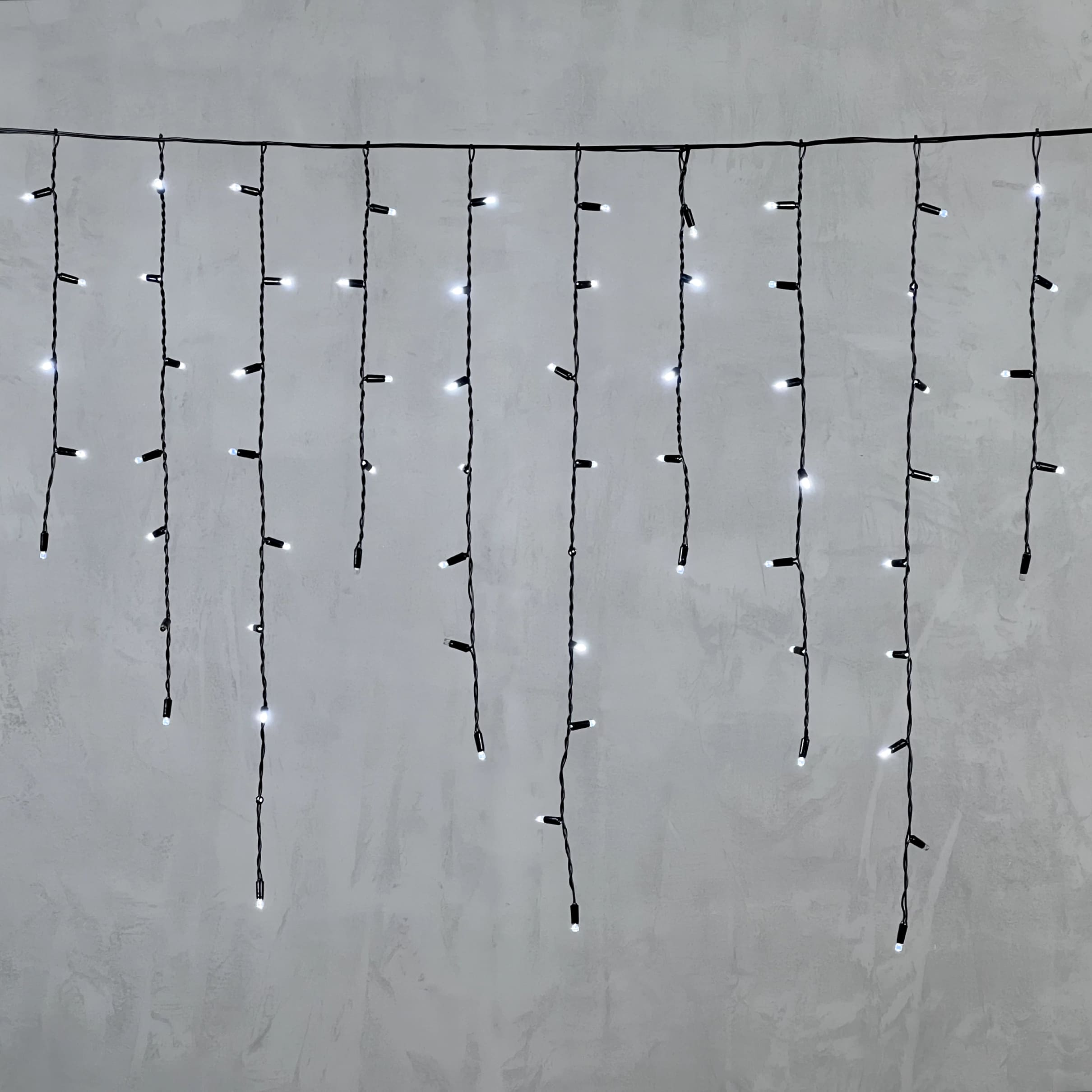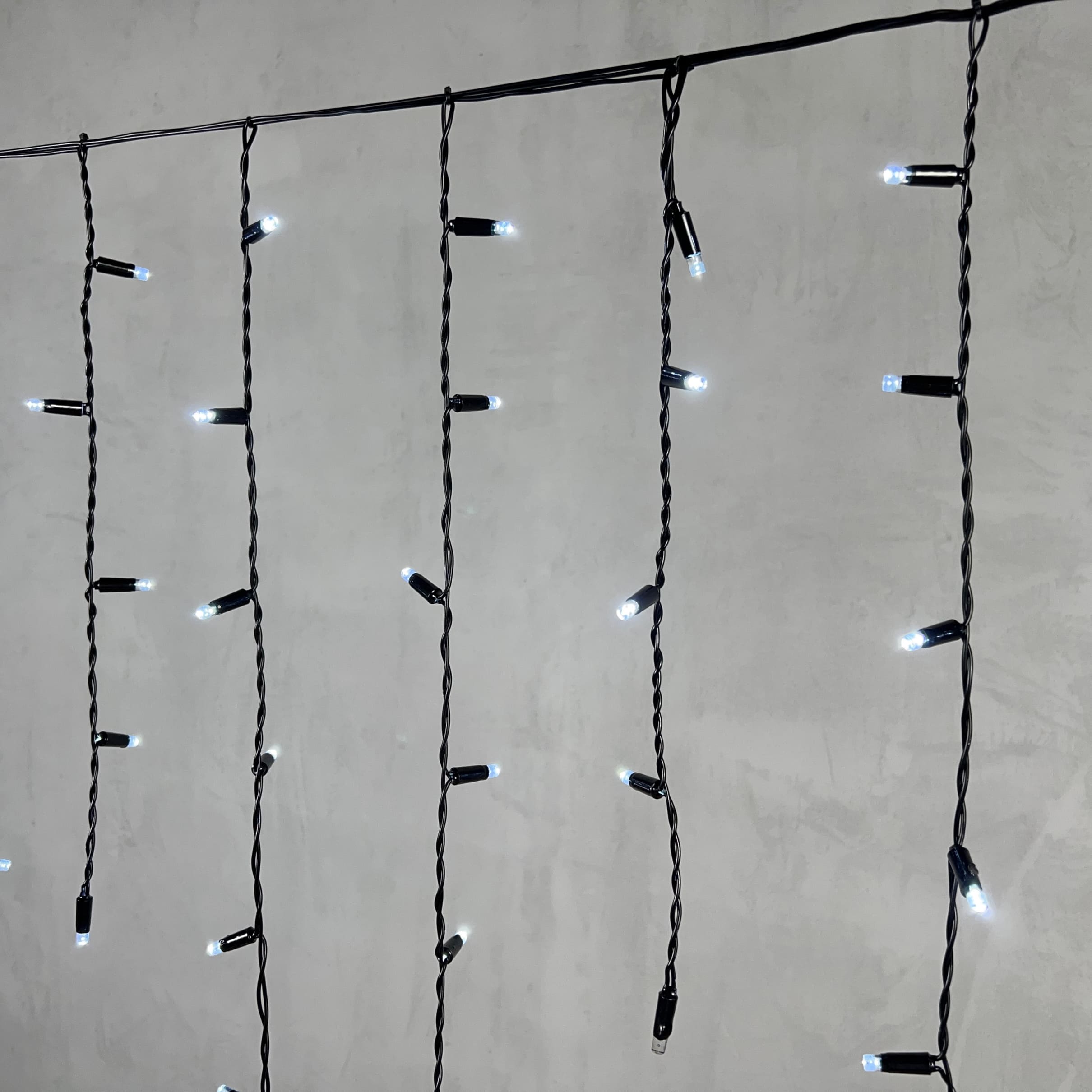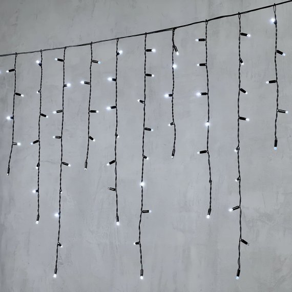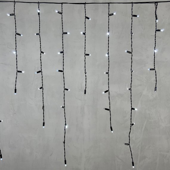Гирлянда Бахрома с Колпачком 3,2 x 0,9 м Белая с Мерцанием Белого Диода 220В, 180 LED, Провод Черный ПВХ, IP65