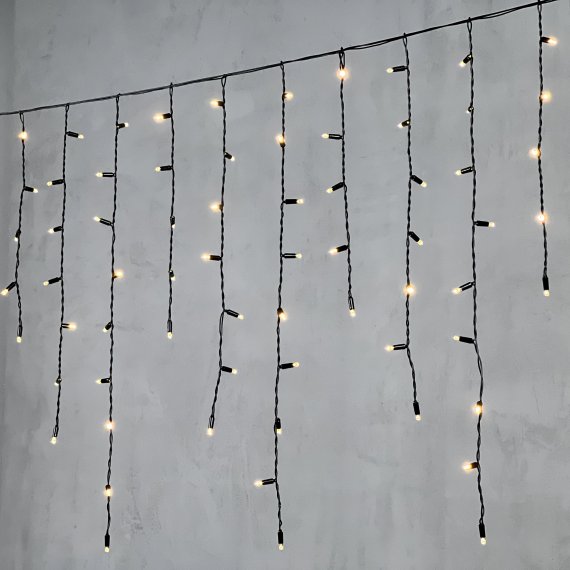 Гирлянда Бахрома с Колпачком 3,2 x 0,9 м Тепло-Белая 220В, 180 LED, Провод Черный ПВХ, IP65