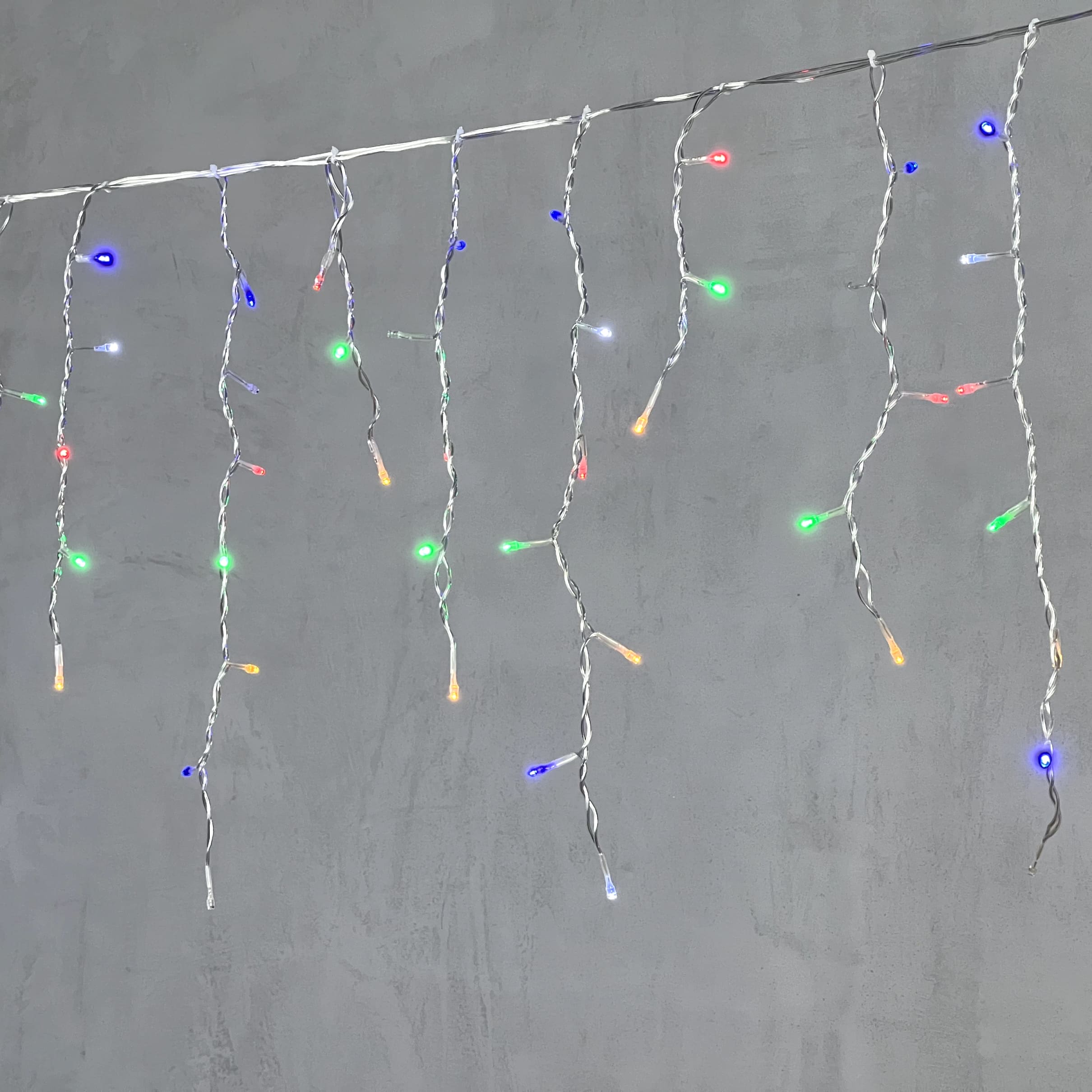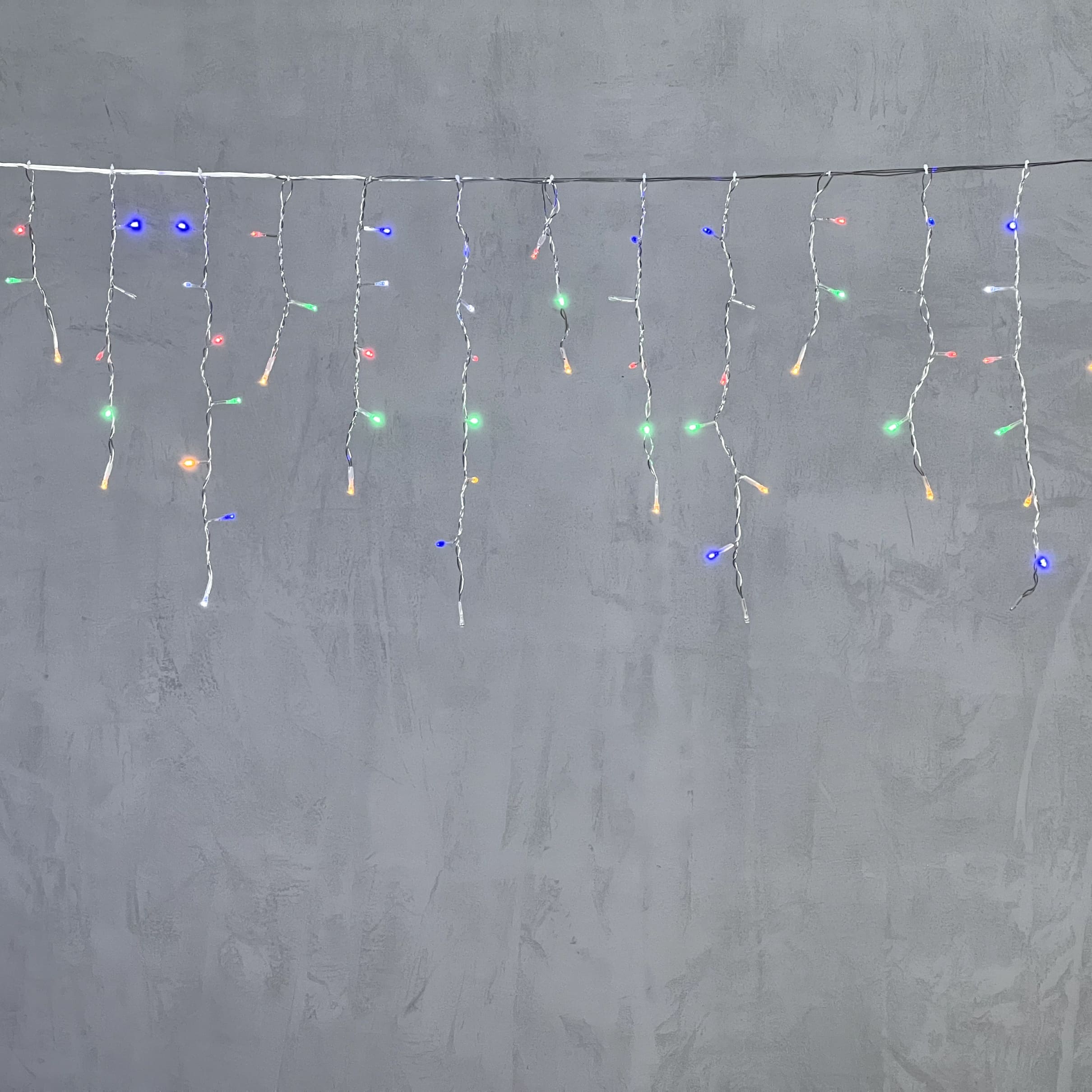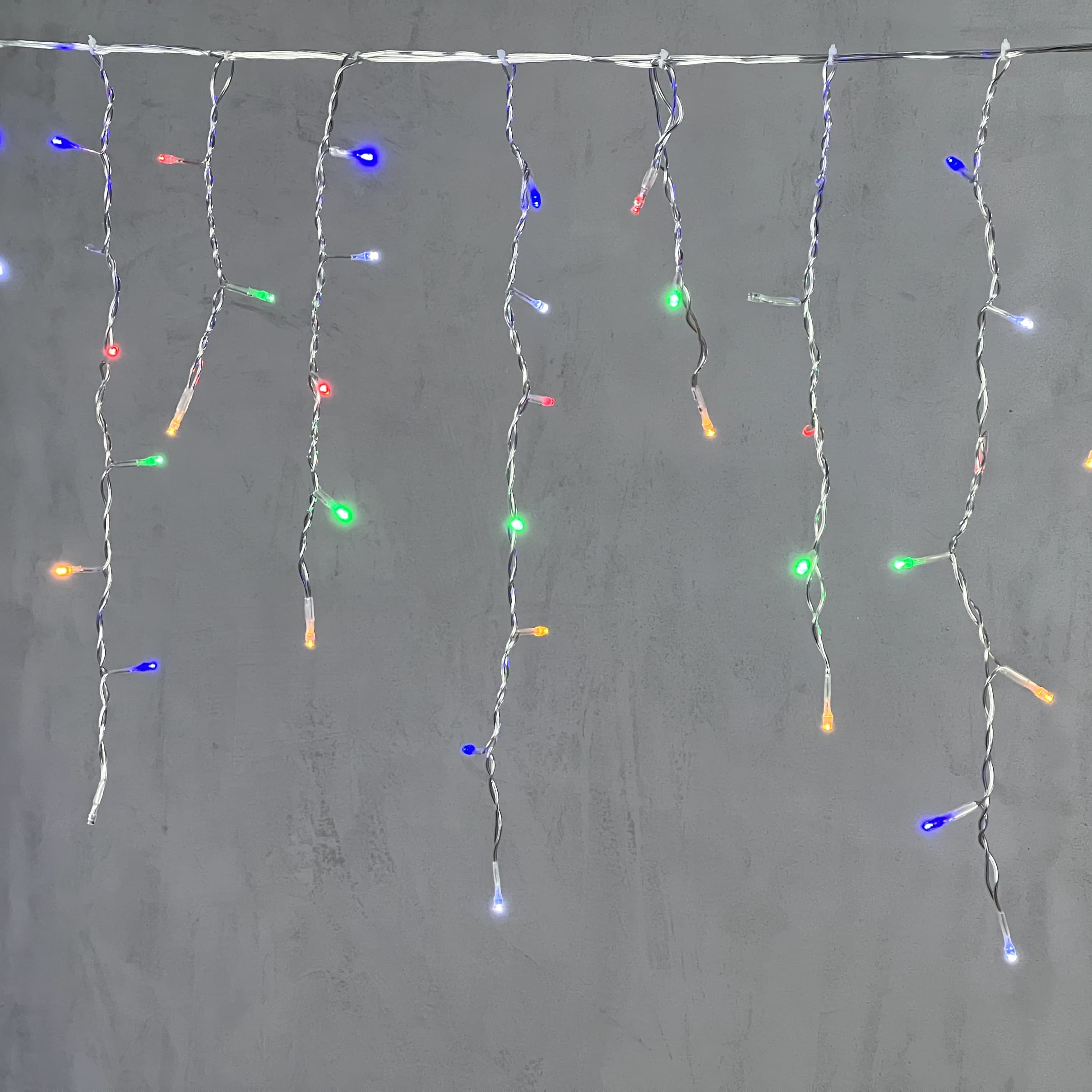 Гирлянда Бахрома 4,9 x 0,5 м Разноцветная с Мерцанием Белого Диода 220В, 240 LED, Провод Проз