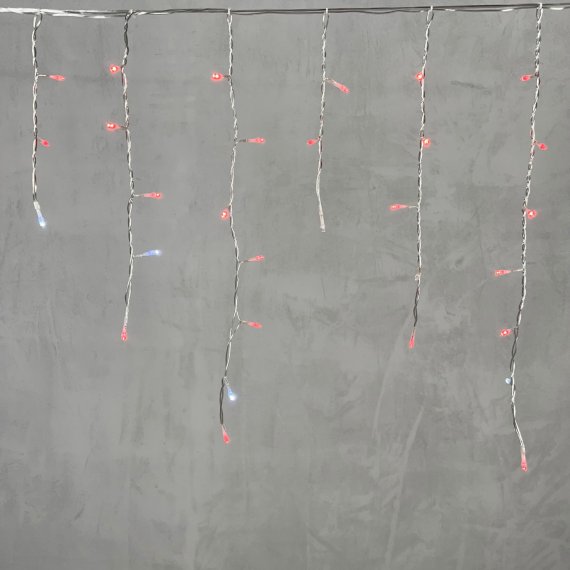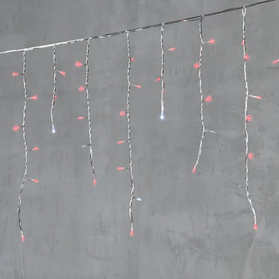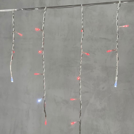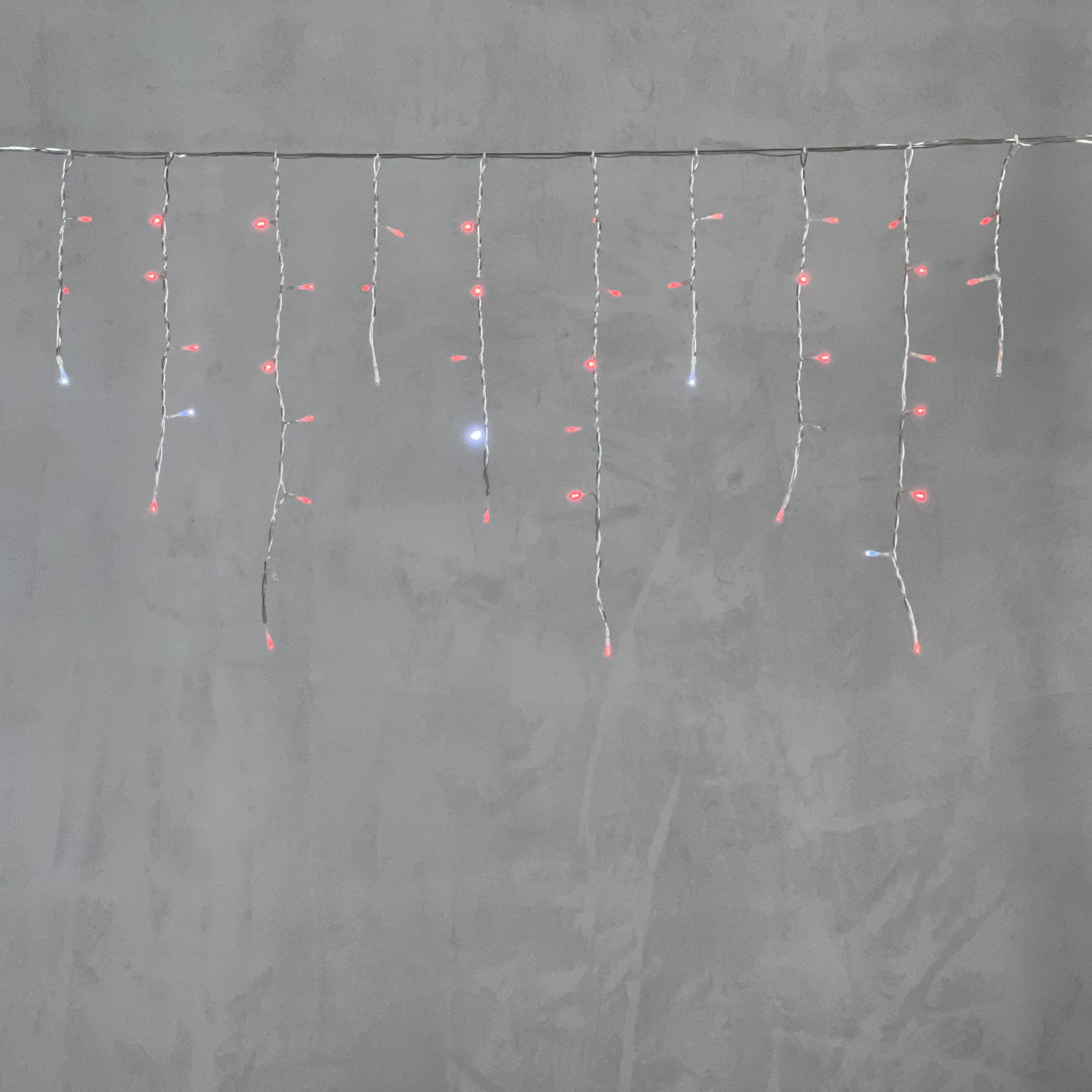 Гирлянда Бахрома 4,9 x 0,5 м Красная с Мерцанием Белого Диода 220В, 240 LED, Провод Прозрачны