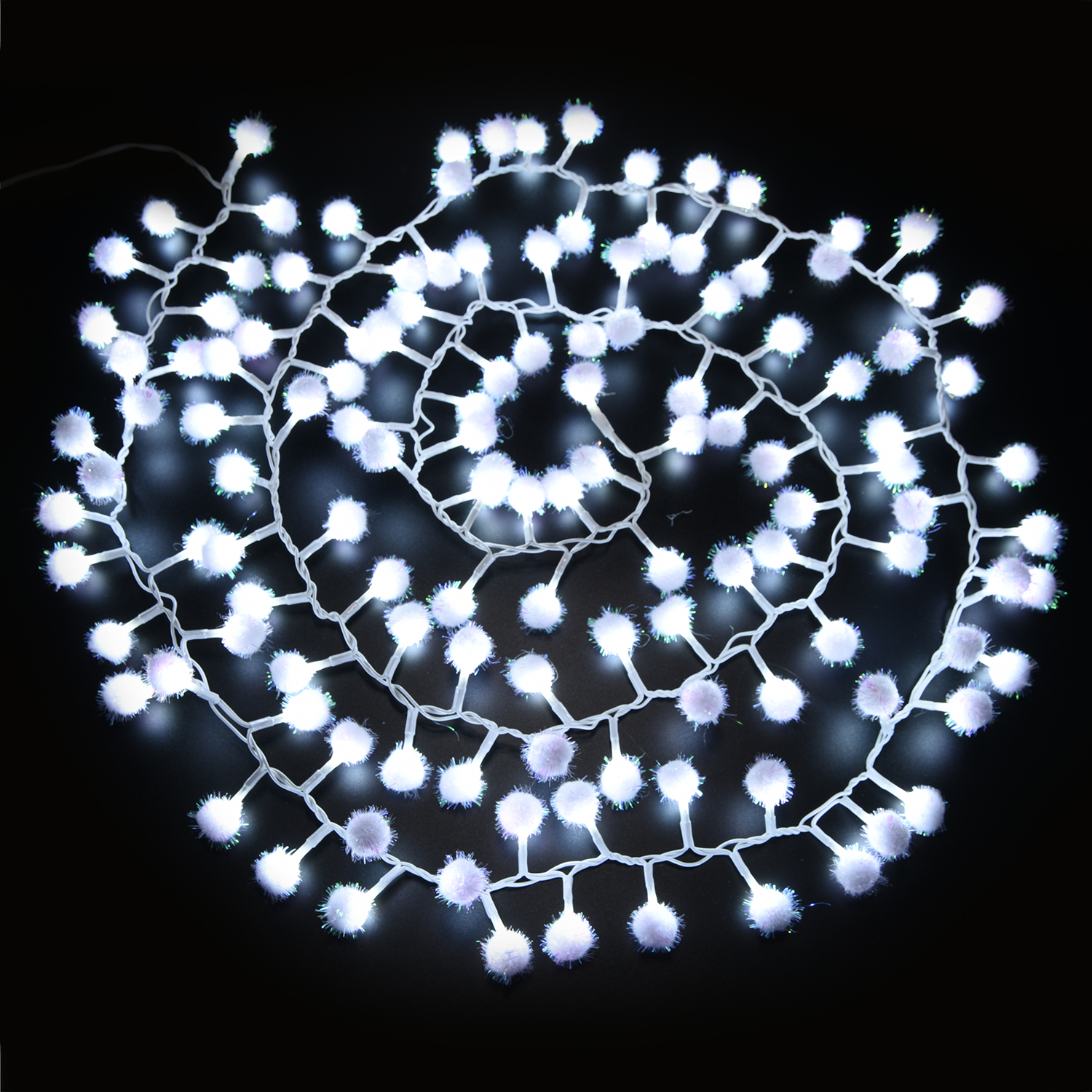 Гирлянда "Снежные Шарики" 2м Белая 24В, 128LED, Провод Белый ПВХ, IP20