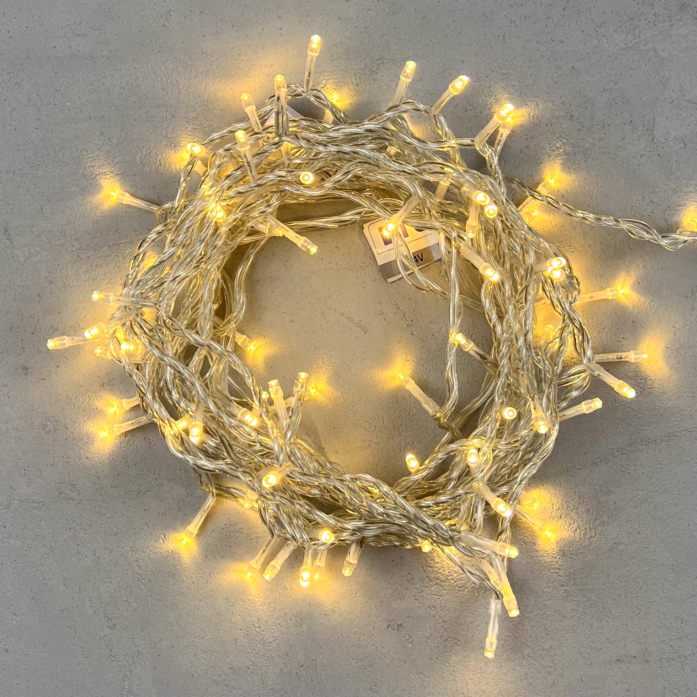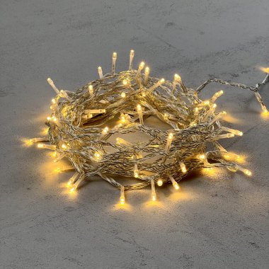 Гирлянда Нить 10м Тепло-Белая 24В, 100 LED, Провод Прозрачный ПВХ, IP54