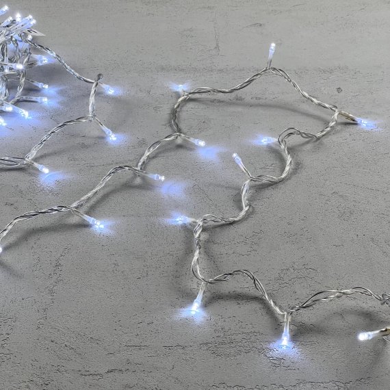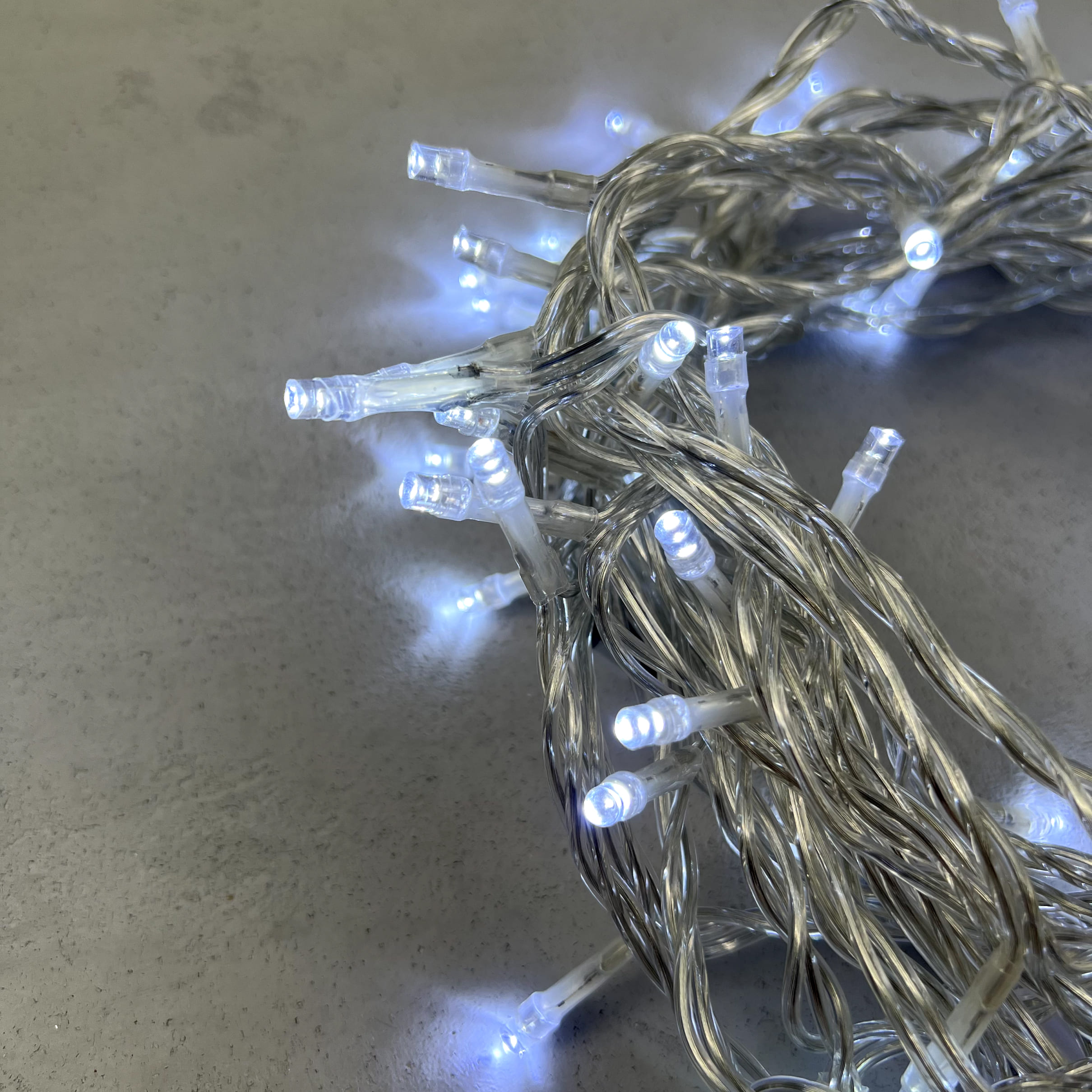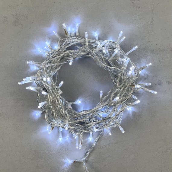 Гирлянда Нить 10м Белая 220В, 100 LED, Провод Прозрачный ПВХ, IP54