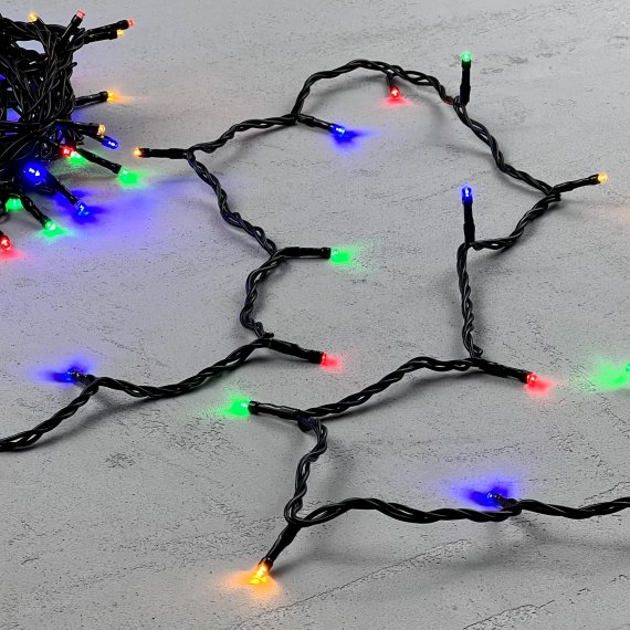 Гирлянда Нить 10м Разноцветная 24В, 100 LED, Провод Черный ПВХ, IP54