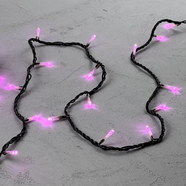 Гирлянда Нить 10м Розовая 24В, 100 LED, Провод Черный ПВХ, IP54