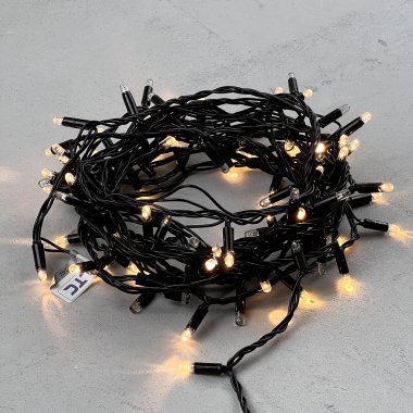 Гирлянда Нить с Колпачком 10м Тепло-Белая с Мерцанием Каждого Диода 24В, 100 LED, Провод Черный ПВХ, IP65