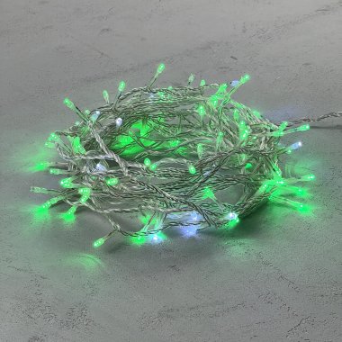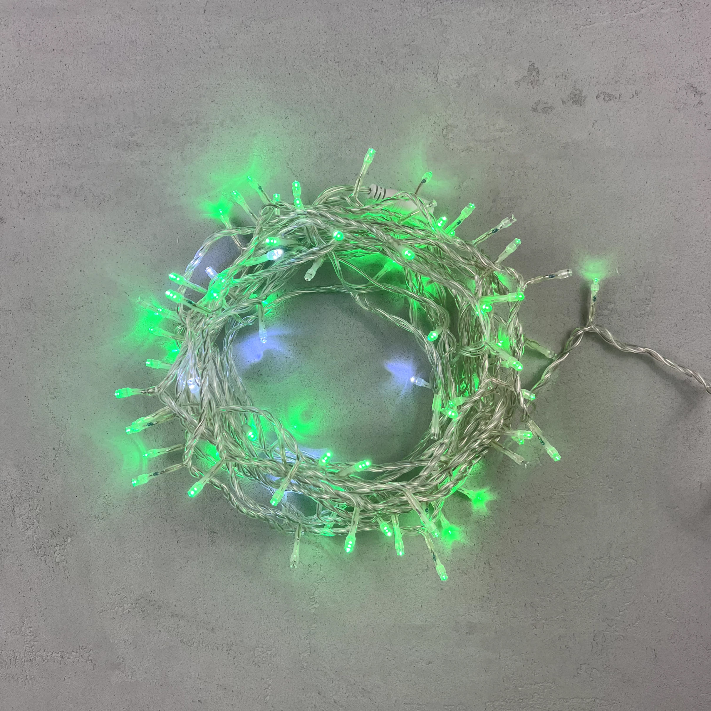 Гирлянда Нить 10м Зеленая с Мерцанием Белого Диода 24В, 100 LED, Провод Прозрачный ПВХ, IP54
