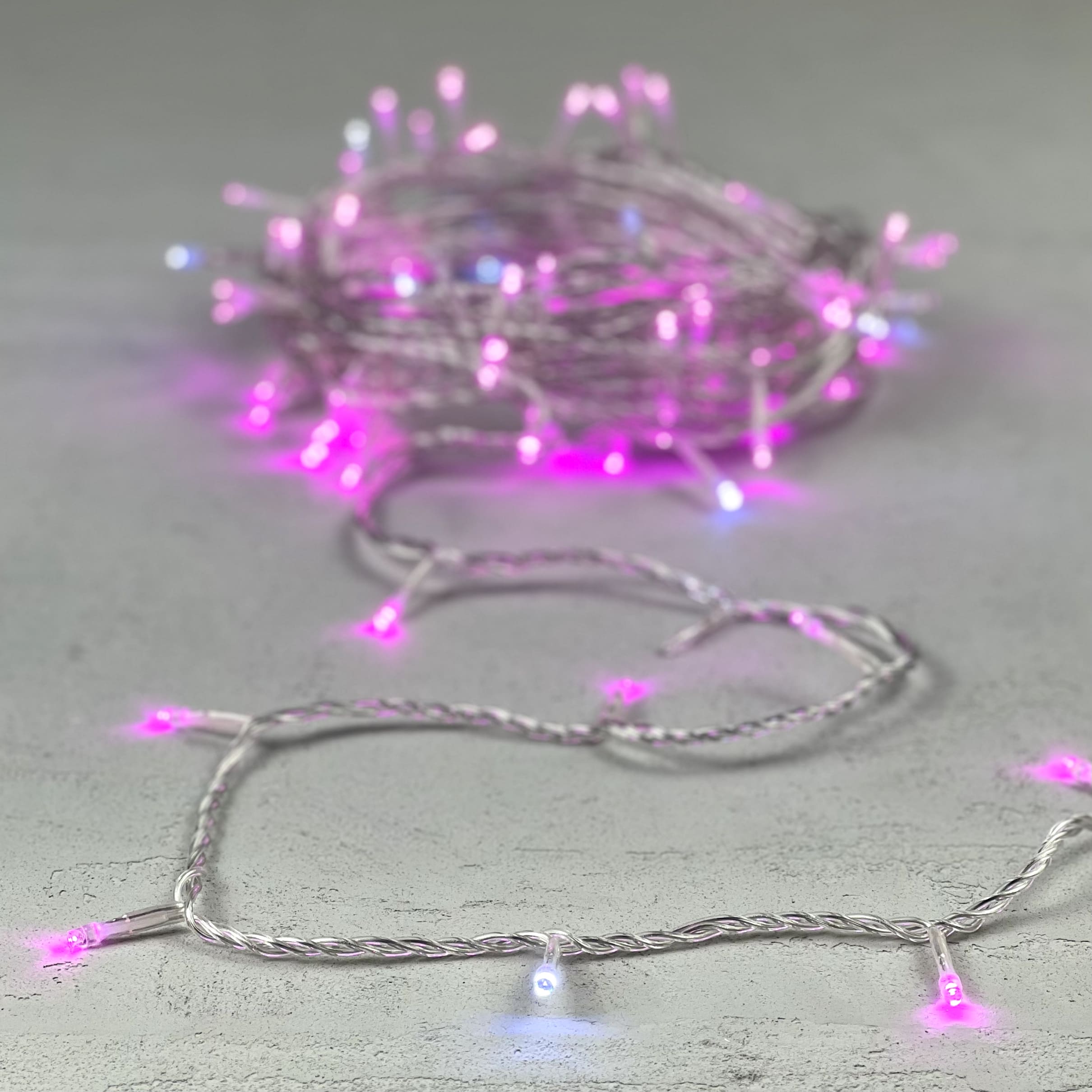 Светодиодная нить 10м, 24V, прозр. пр. розовый (мерцание БЕЛЫЙ ДИОД) ,