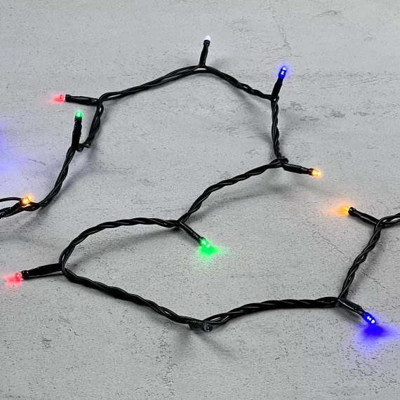 Гирлянда Нить 10м Разноцветная с Мерцанием Белого Диода 24В, 100 LED, Провод Черный ПВХ, IP54