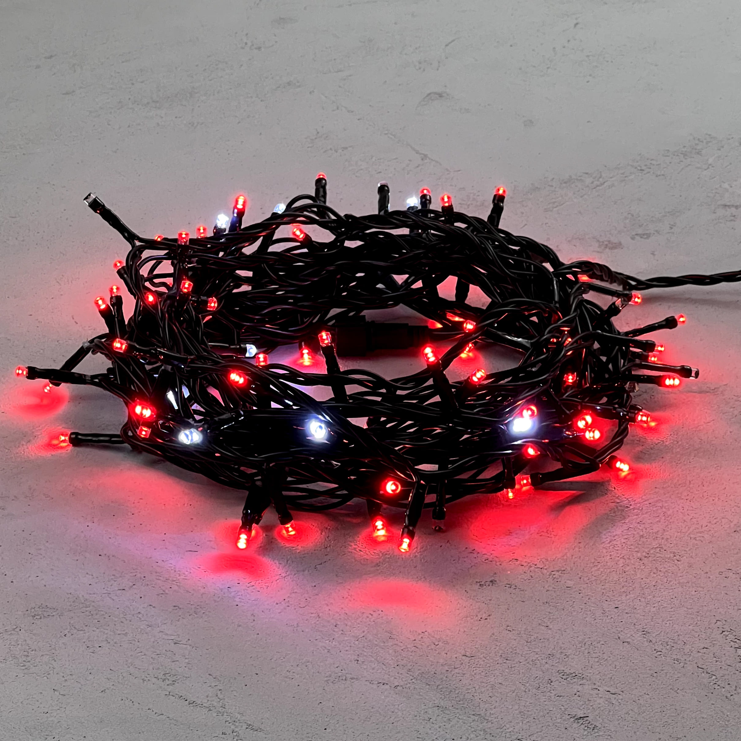 Гирлянда Нить 10м Красная с Мерцанием Белого Диода 24В, 100 LED, Провод Черный ПВХ, IP54