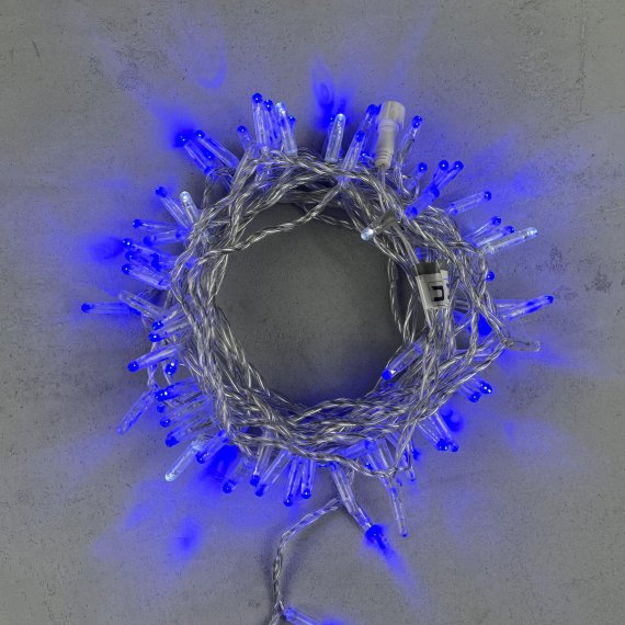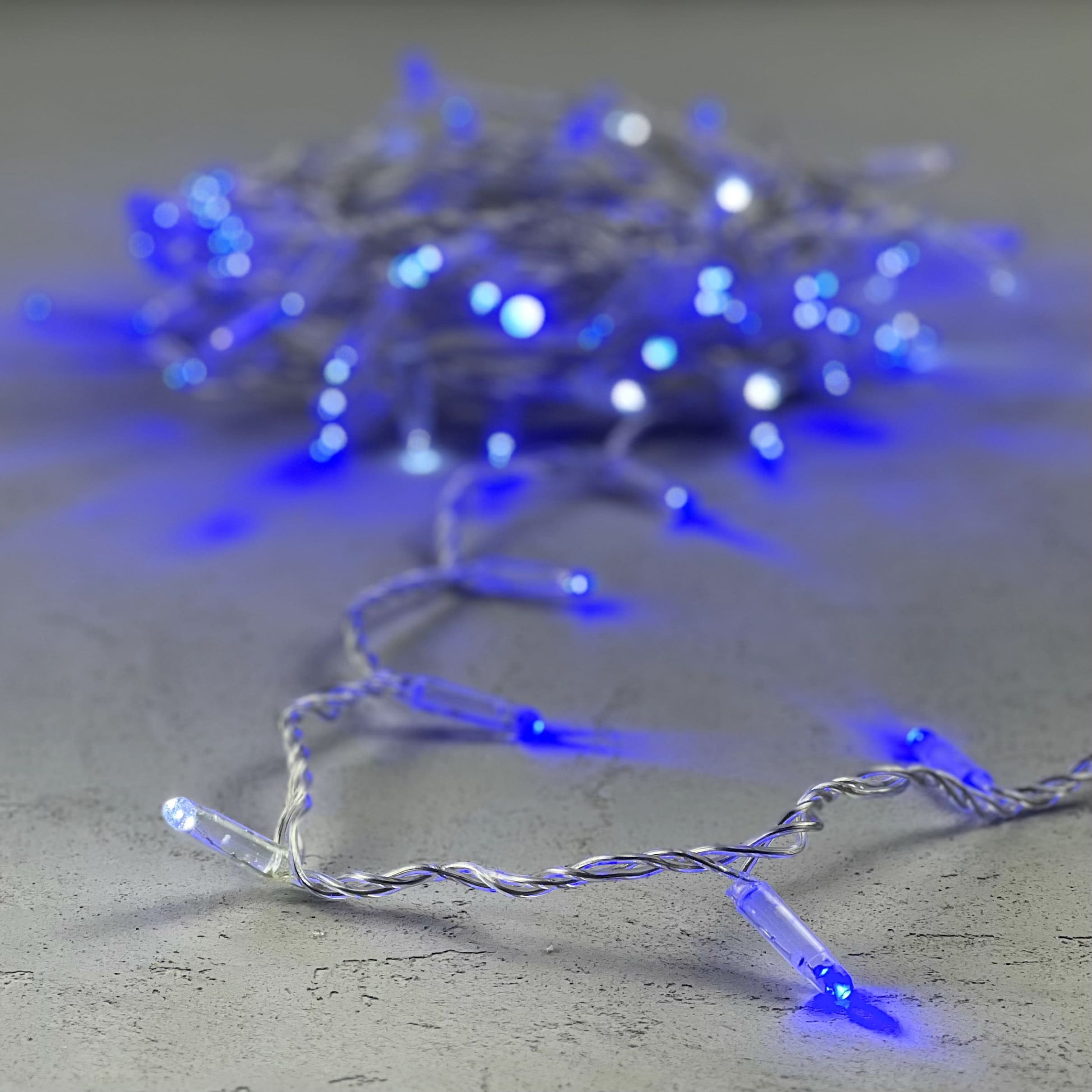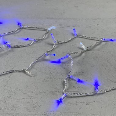 Гирлянда Нить с Колпачком 10м Синяя с Мерцанием Белого Диода 24В, 100 LED, Провод Прозрачный ПВХ, IP65