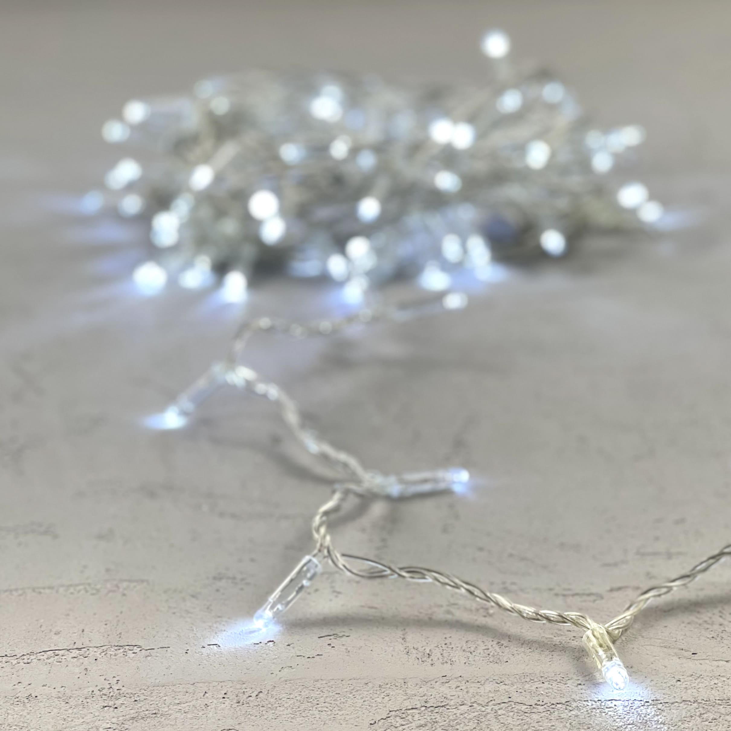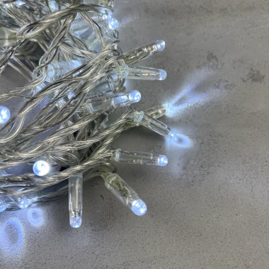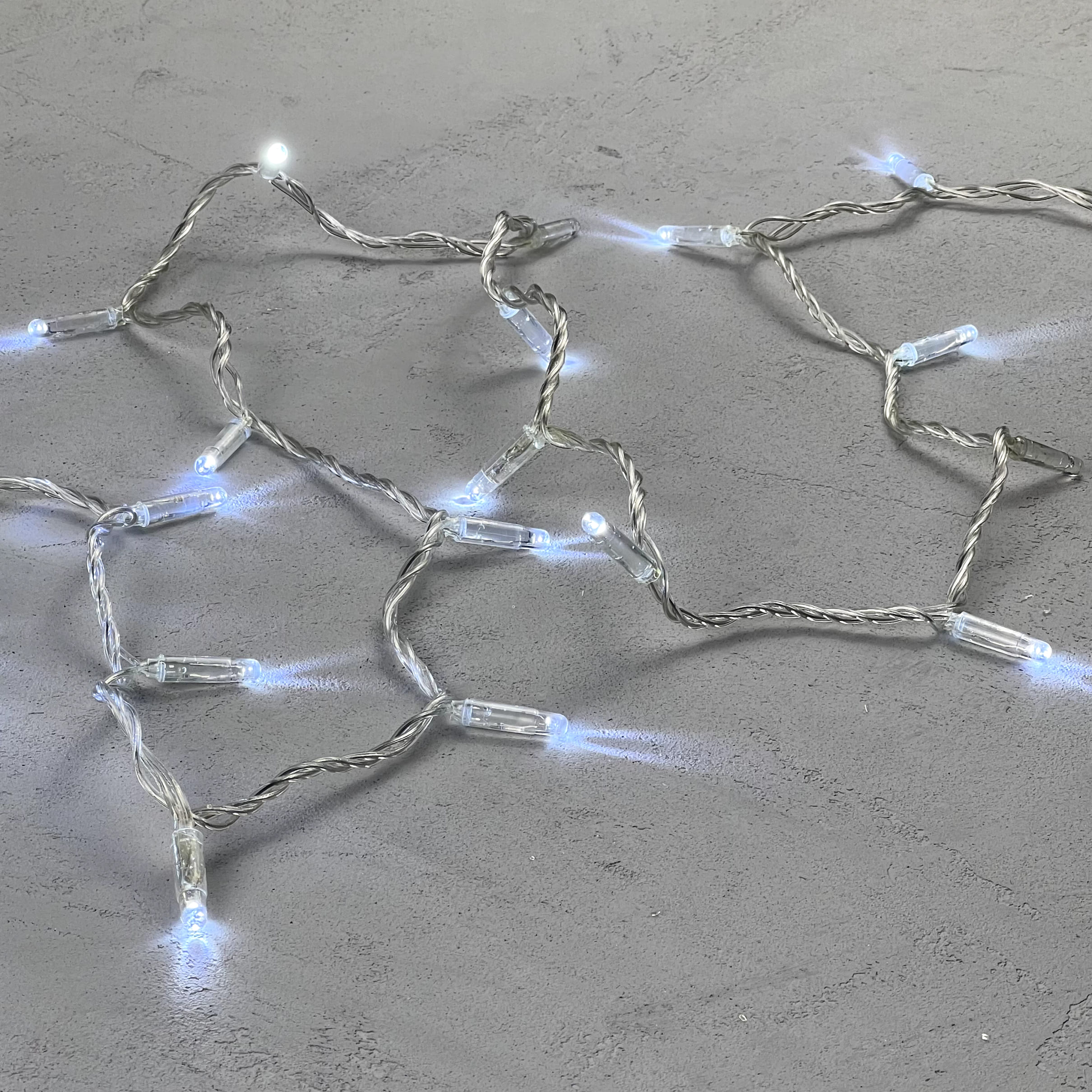 Гирлянда Нить с Колпачком 10м Белая с Мерцанием Белого Диода 24В, 100 LED, Провод Прозрачный