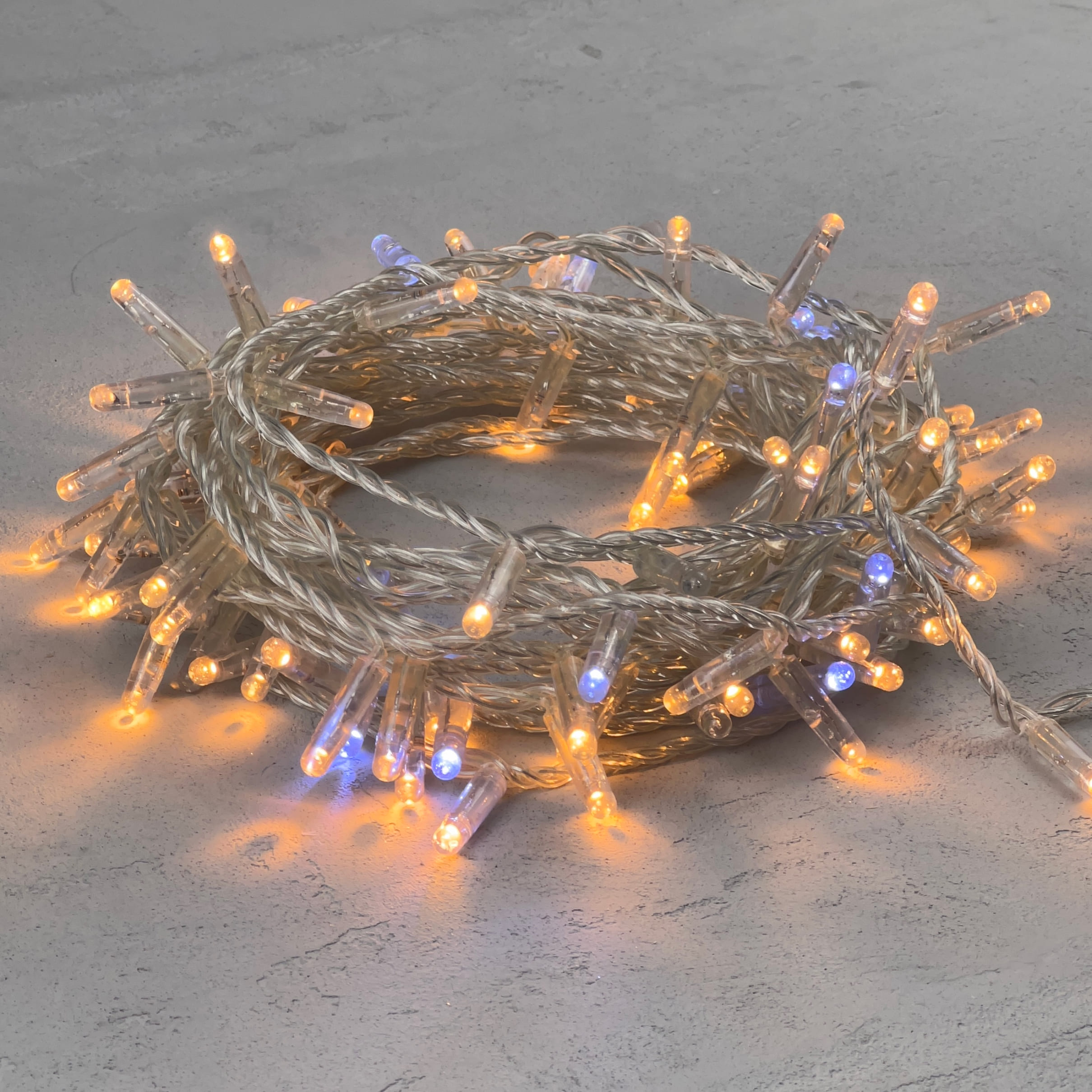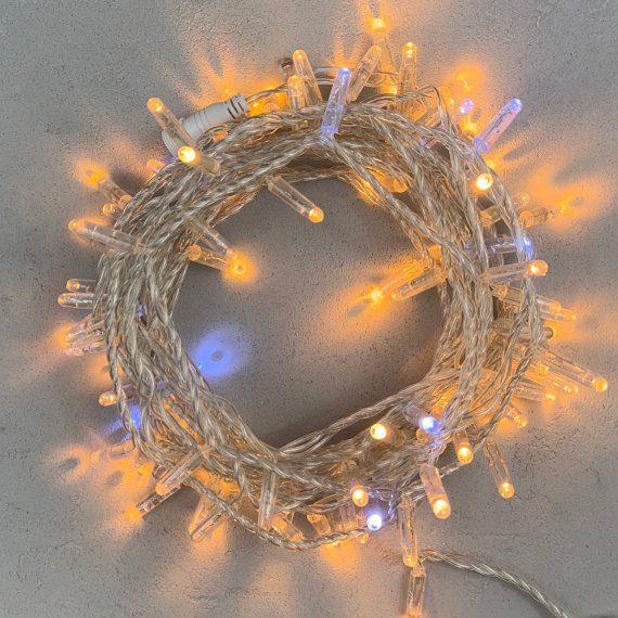 Гирлянда Нить с Колпачком 10м Экстра Тепло-Белая с Мерцанием Белого Диода 220В, 100 LED, Провод Прозрачный ПВХ, IP65