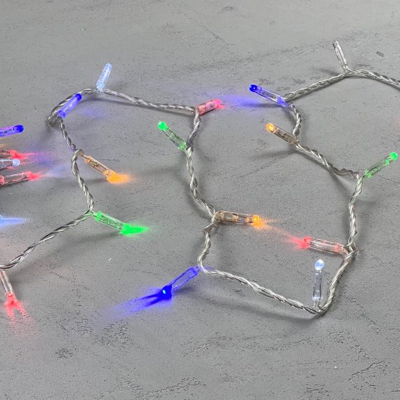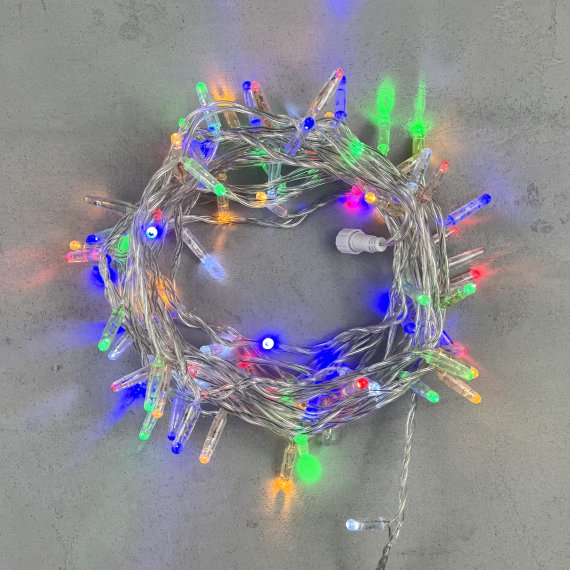 Гирлянда Нить с Колпачком 10м Разноцветная с Мерцанием Белого Диода 220В, 100 LED, Провод Прозрачный ПВХ, IP65