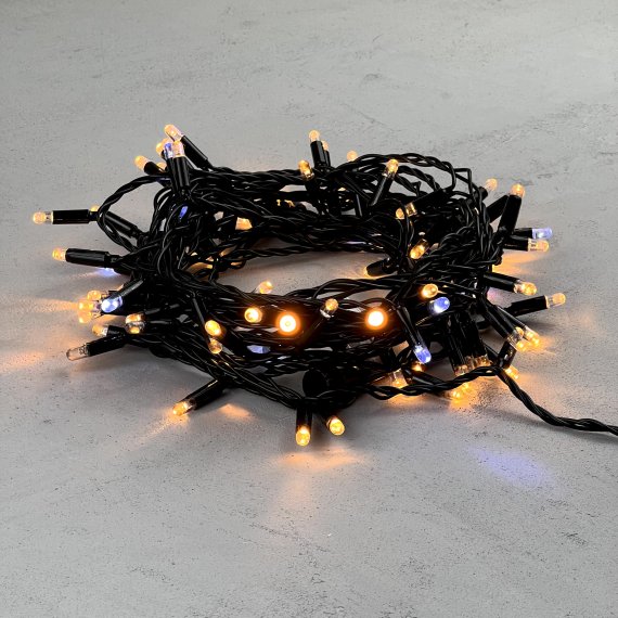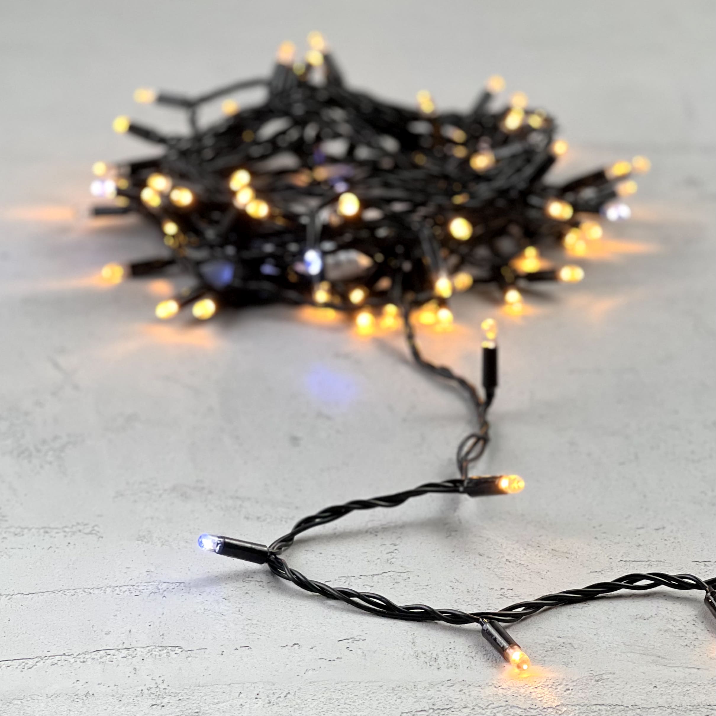 Гирлянда Нить с Колпачком 10м Экстра Тепло-Белая с Мерцанием Белого Диода 24В, 100 LED, Провод Черный ПВХ, IP65