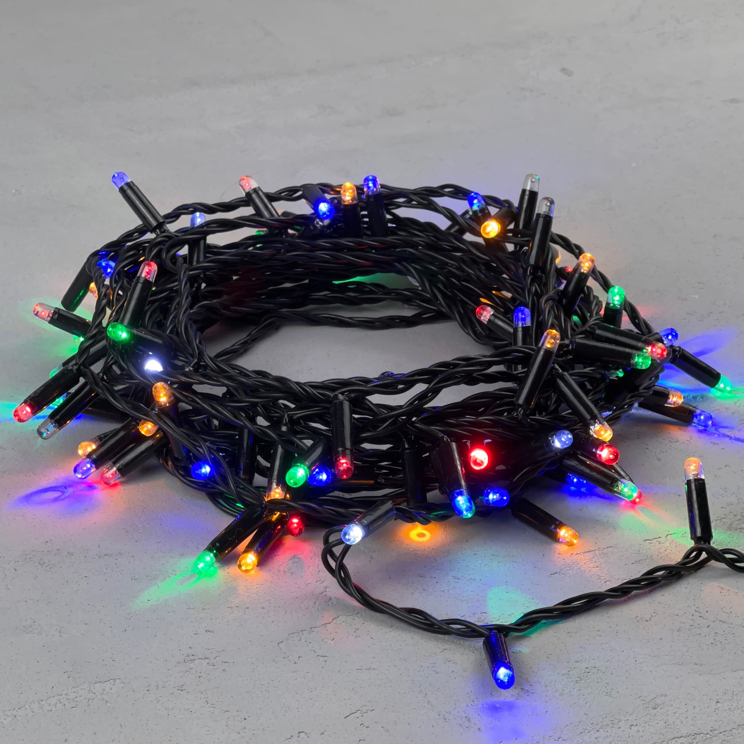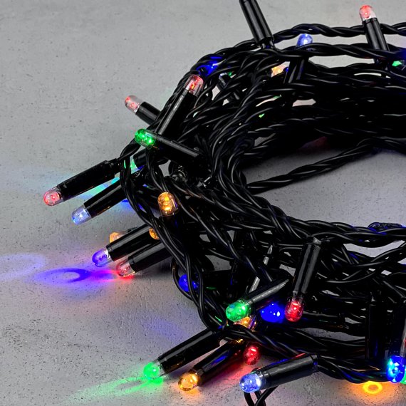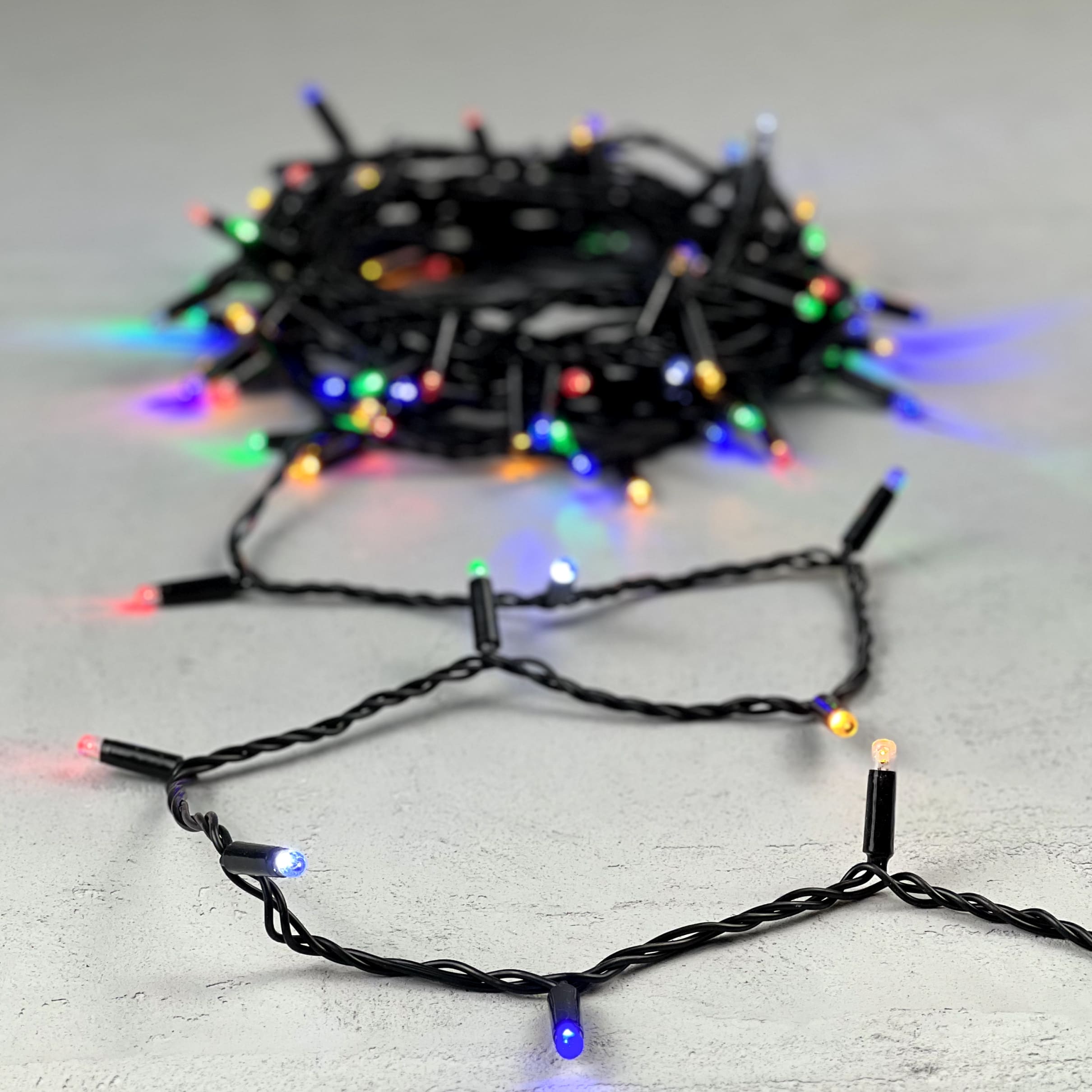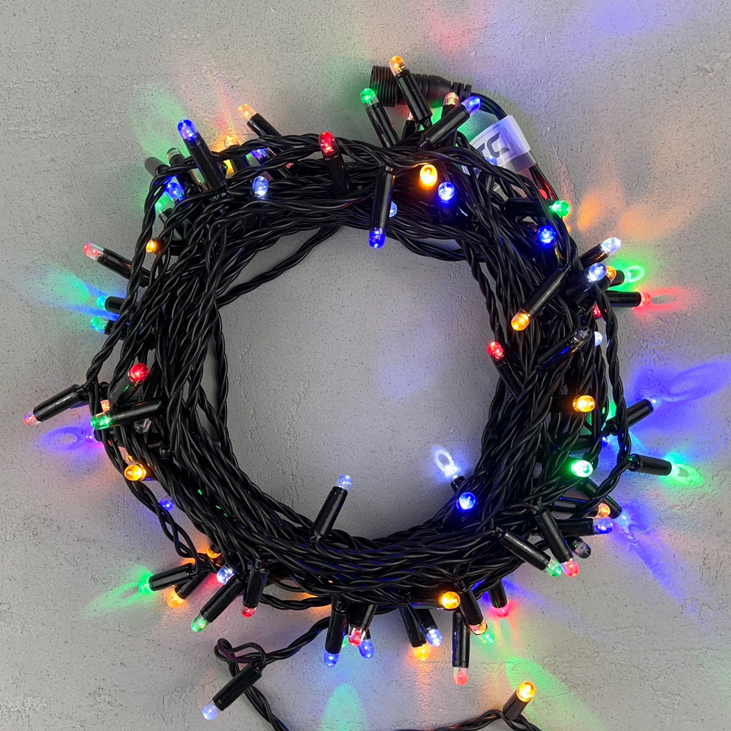 Гирлянда Нить с Колпачком 10м Разноцветная с Мерцанием Белого Диода 220В, 100 LED, Провод Черный ПВХ, IP65