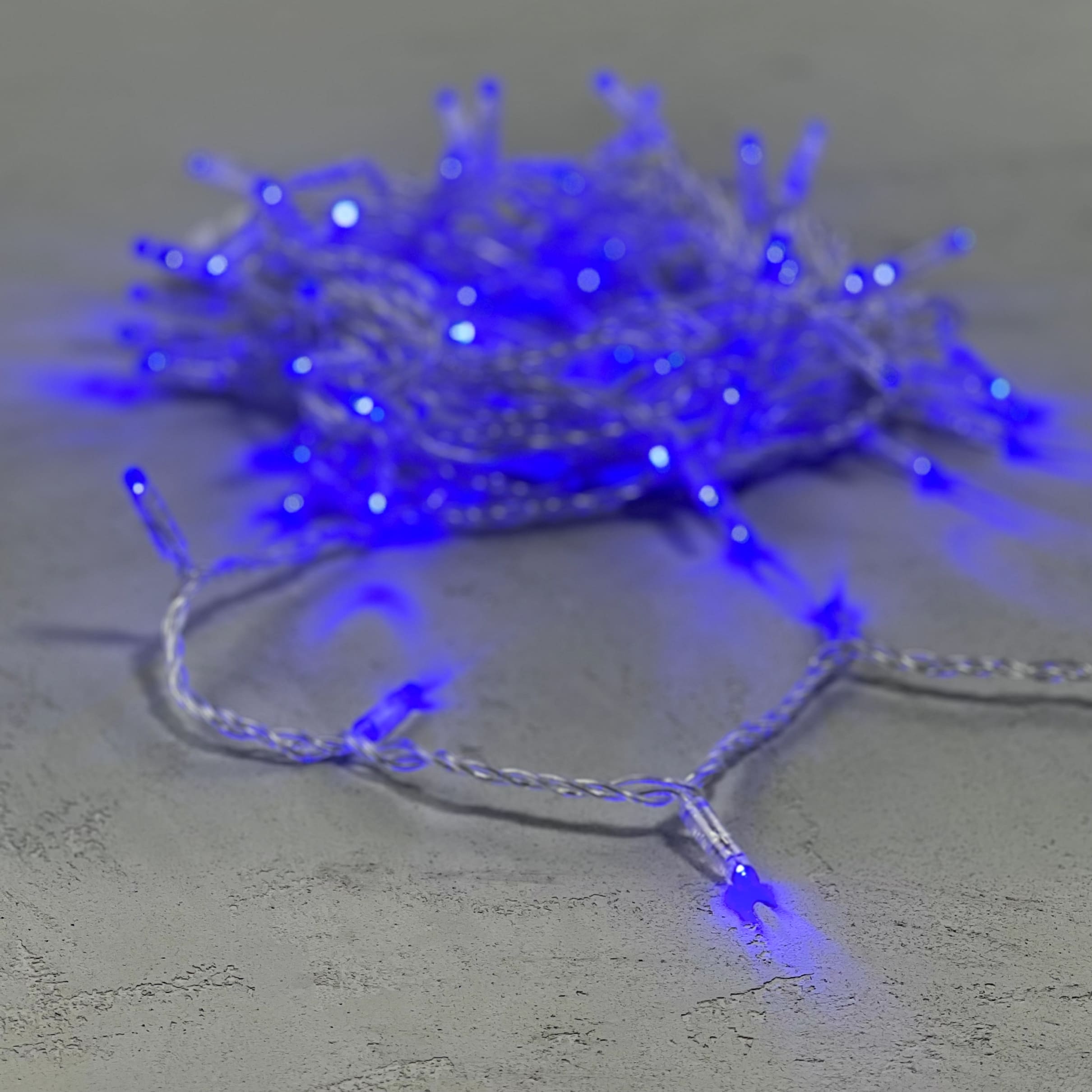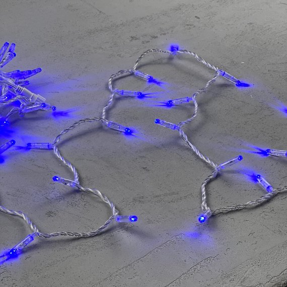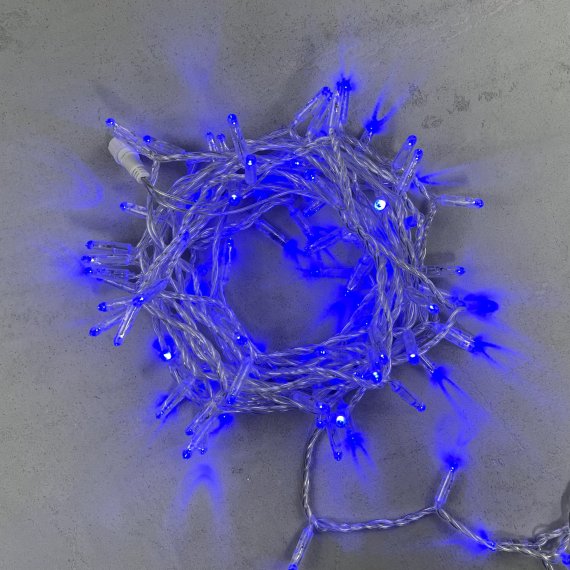 Гирлянда Нить с Колпачком 10м Синяя 24В, 100 LED, Провод Прозрачный ПВХ, IP65