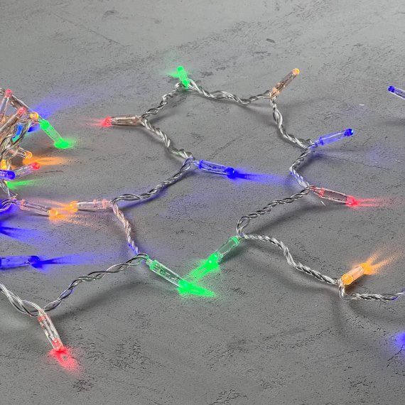 Гирлянда Нить с Колпачком 10м Разноцветная 24В, 100 LED, Провод Прозрачный ПВХ, IP65