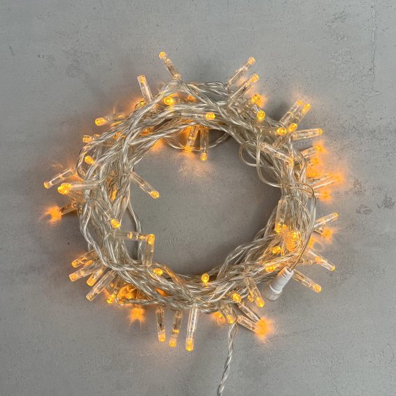 Гирлянда Нить с Колпачком 10м Желтая 24В, 100 LED, Провод Прозрачный ПВХ, IP65
