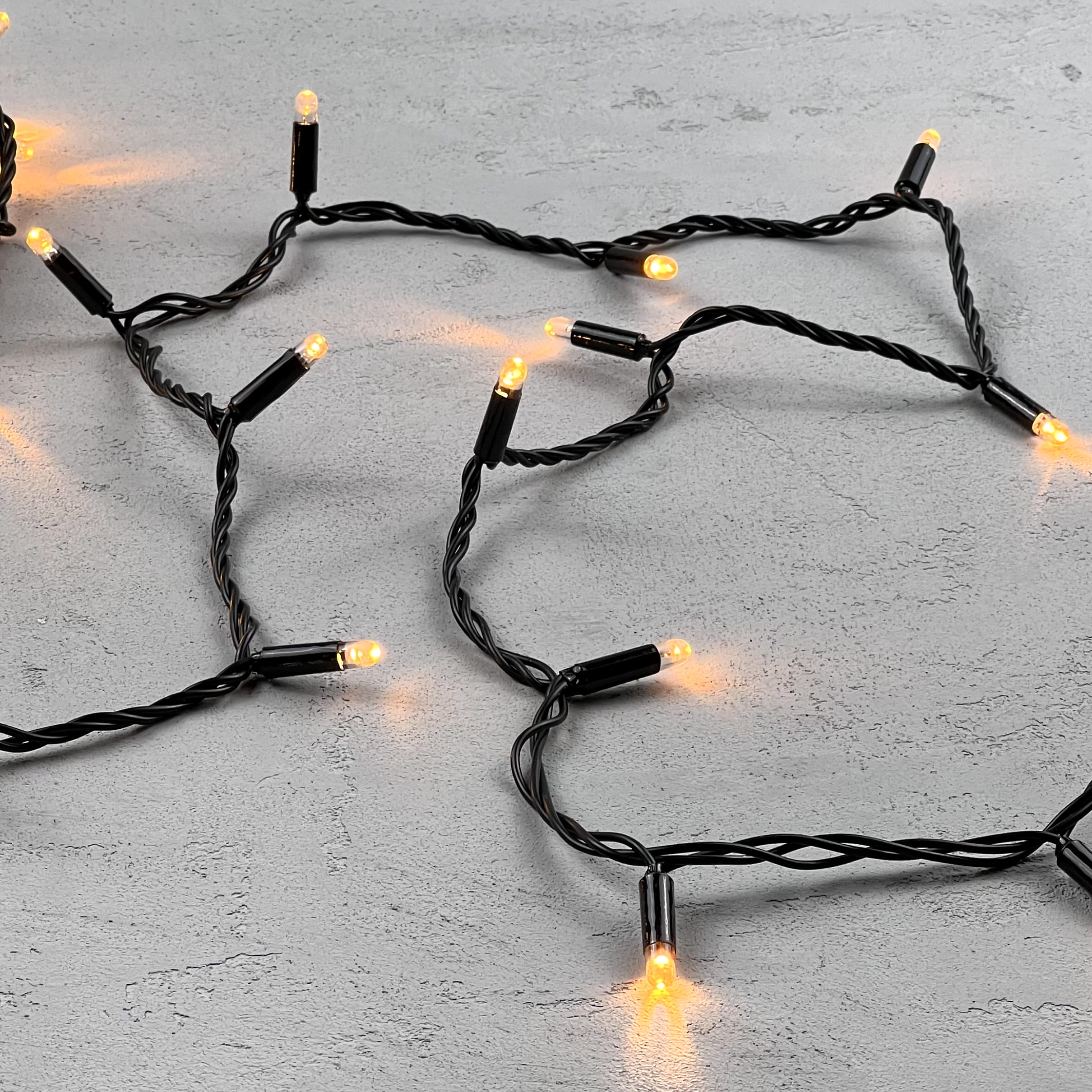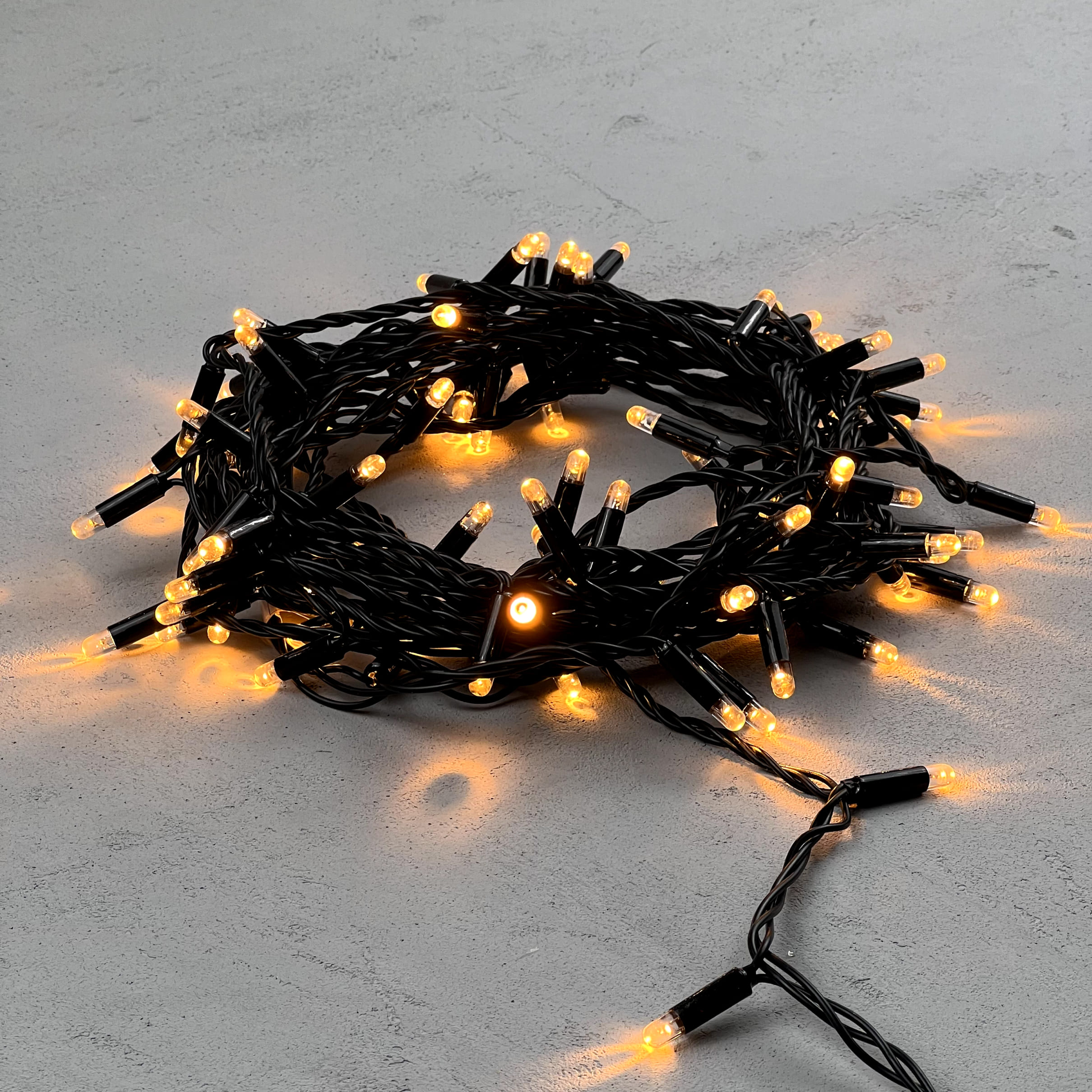 Гирлянда Нить с Колпачком 10м Экстра Тепло-Белая 24В, 100 LED, Провод Черный ПВХ, IP65