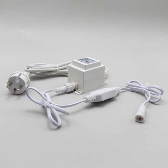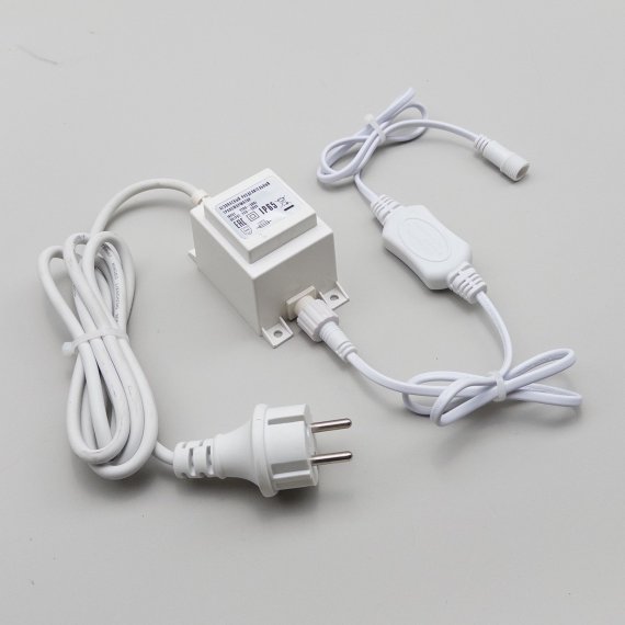 05-054 Трансформатор 30W с Выпрямителем для Нитей 24В, до 600 LED, Провод Белый Каучук, IP65