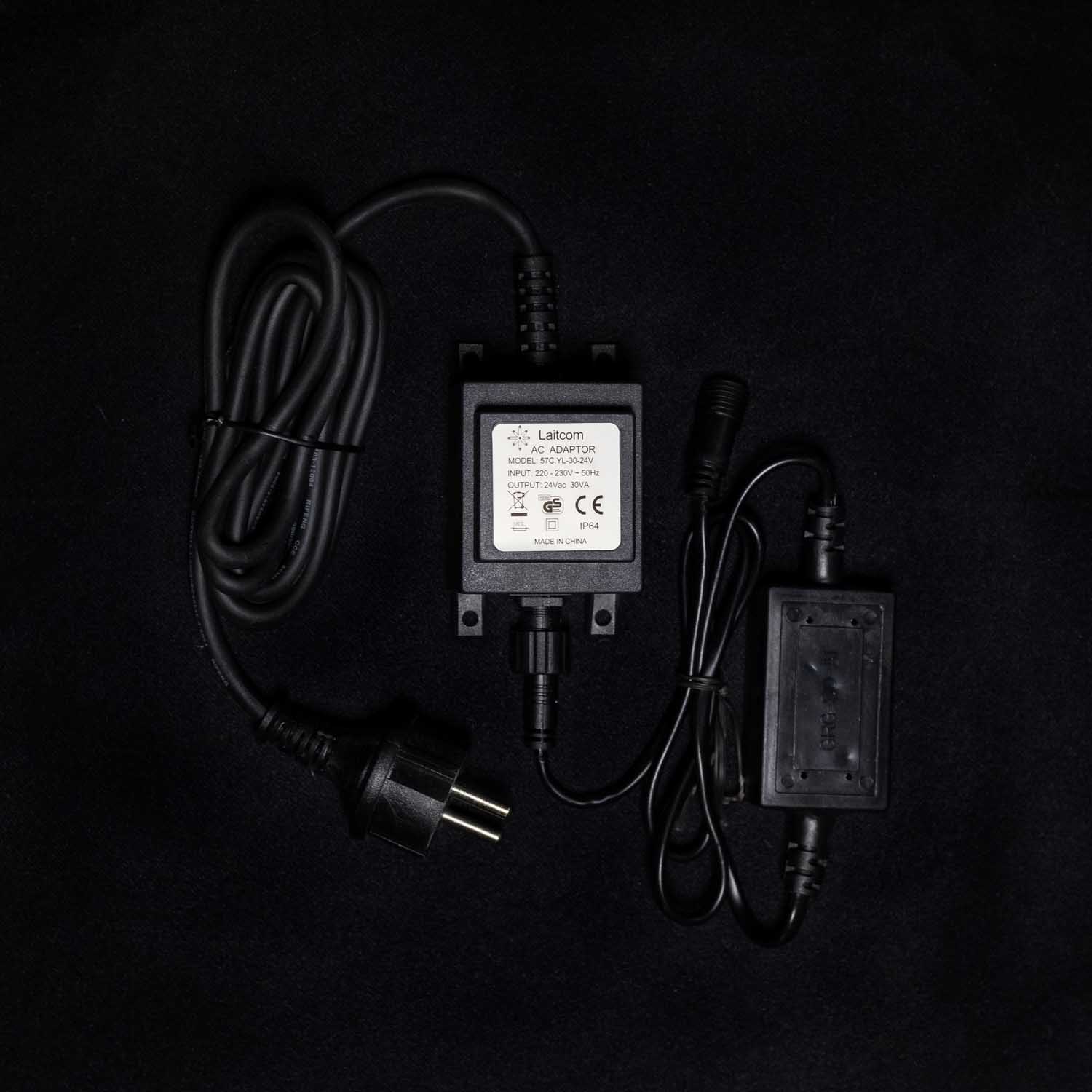 Трансформатор 30W с Выпрямителем для Нитей 24В, до 60м, Провод Черный Каучук, IP65