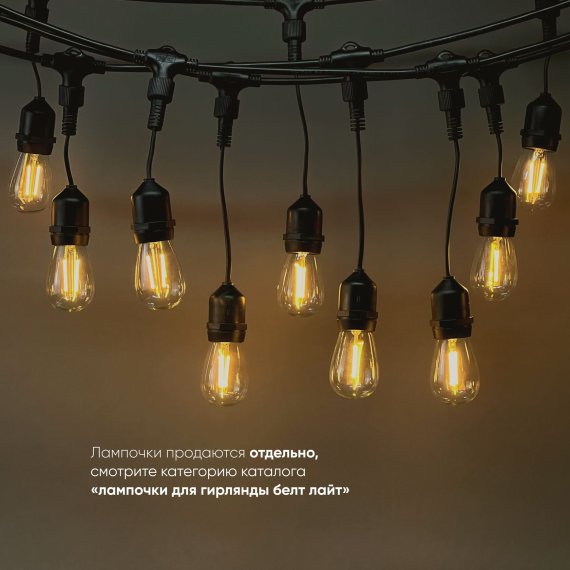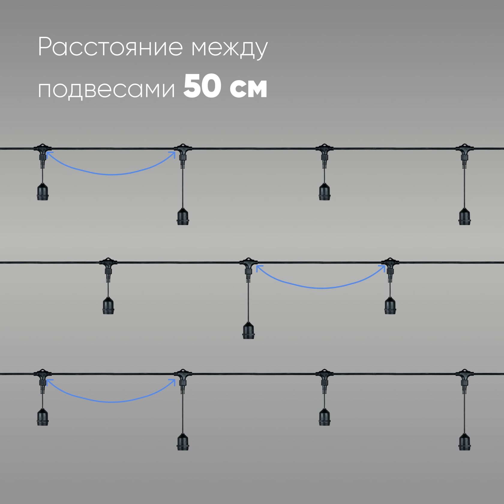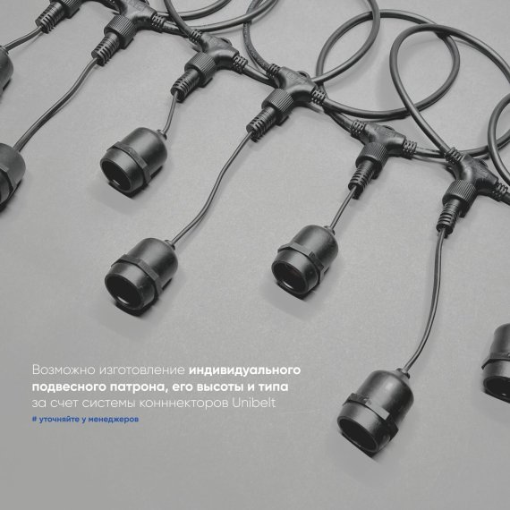 Белт-Лайт UNIBELT 10м, Провод Черный Каучук, Шаг 50 см, 20 Подвесных Патронов, IP65